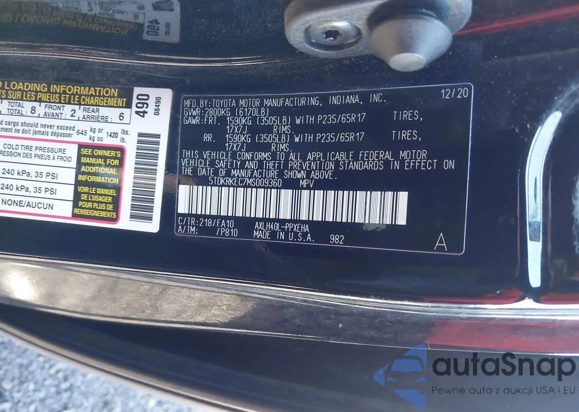 LOT: 44571678 VIN: 5TDKRKEC7MS009360
