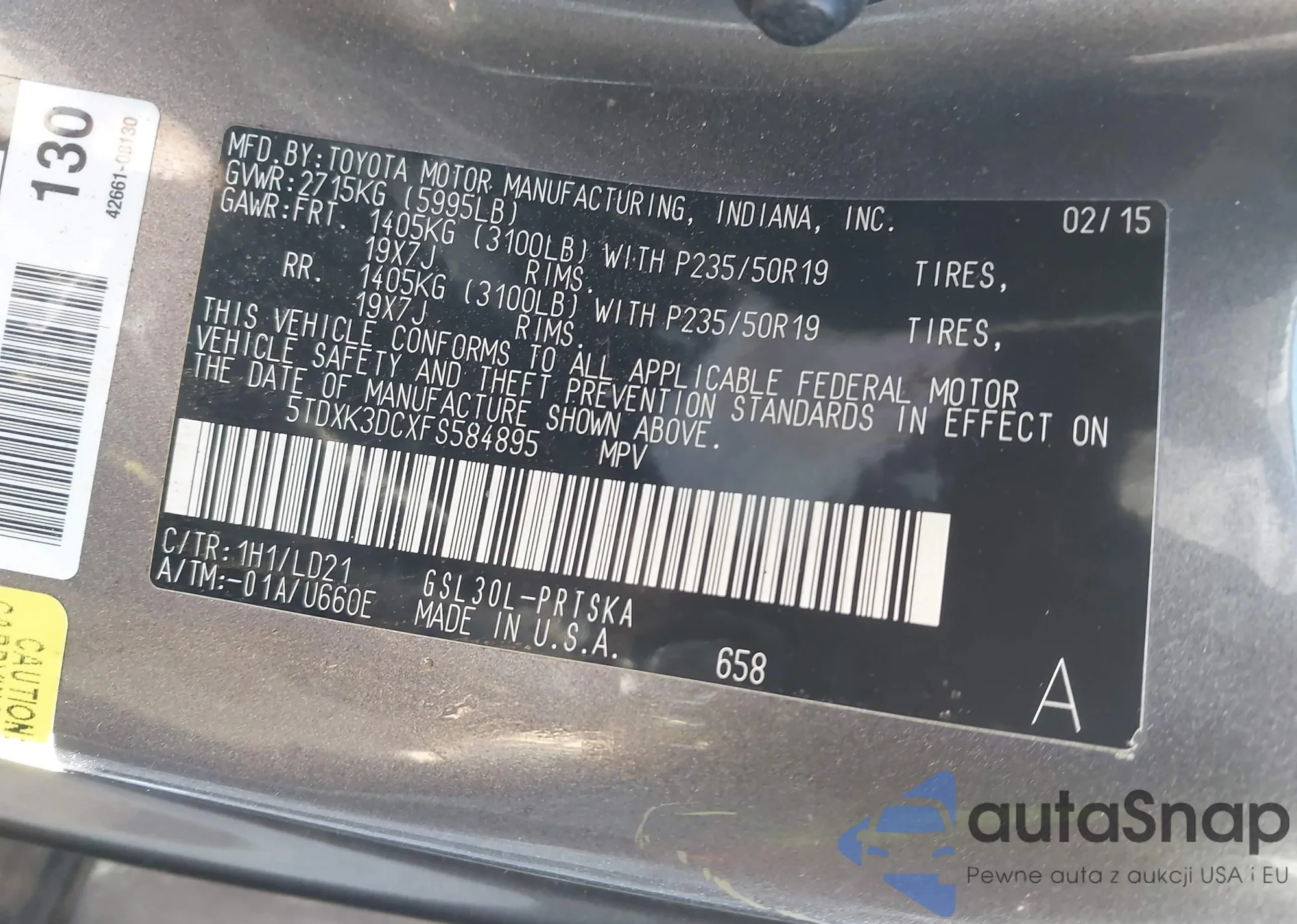 • VIN 5TDYK3DC3FS575170