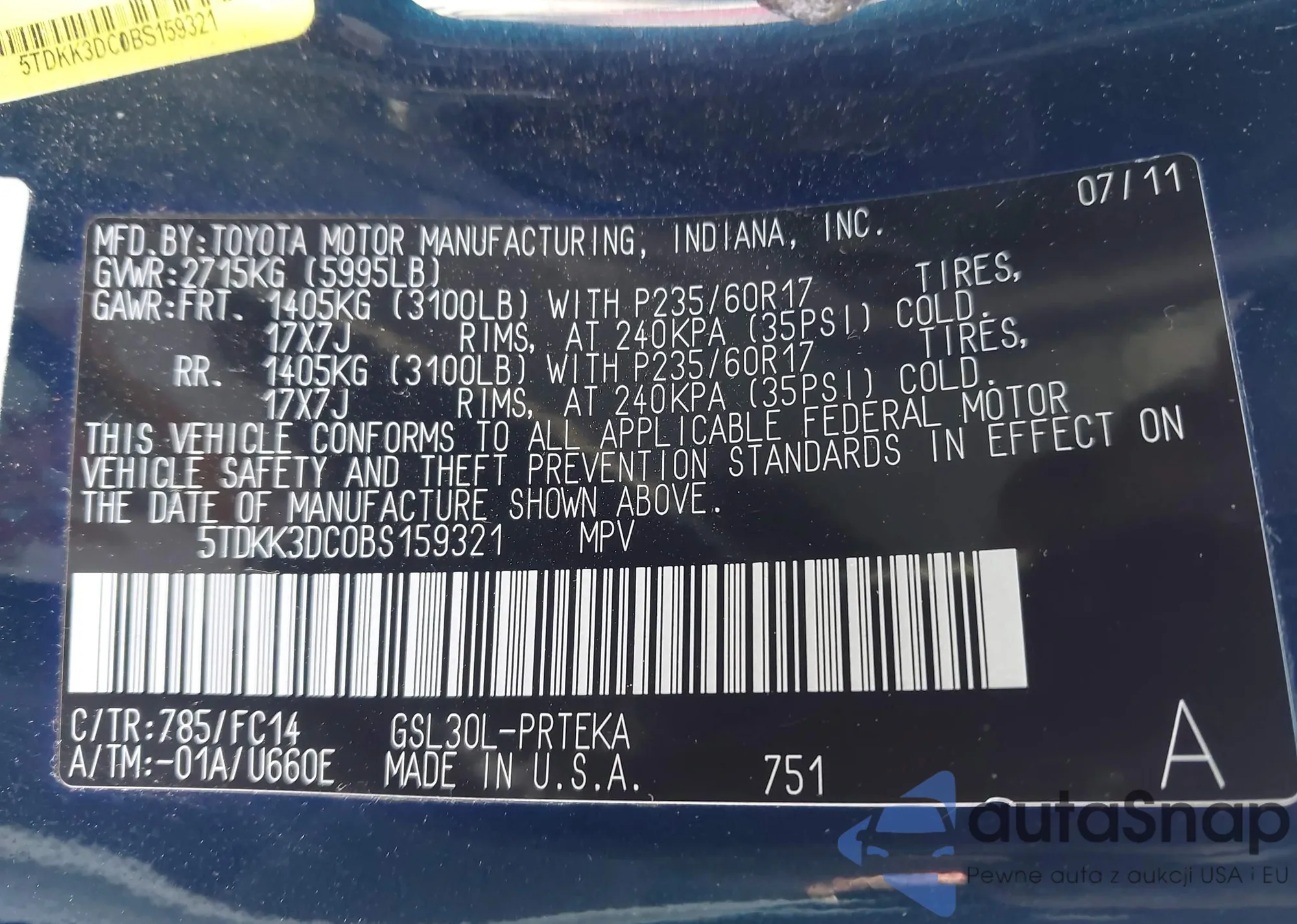 • VIN 5TDKK3DC0BS159321