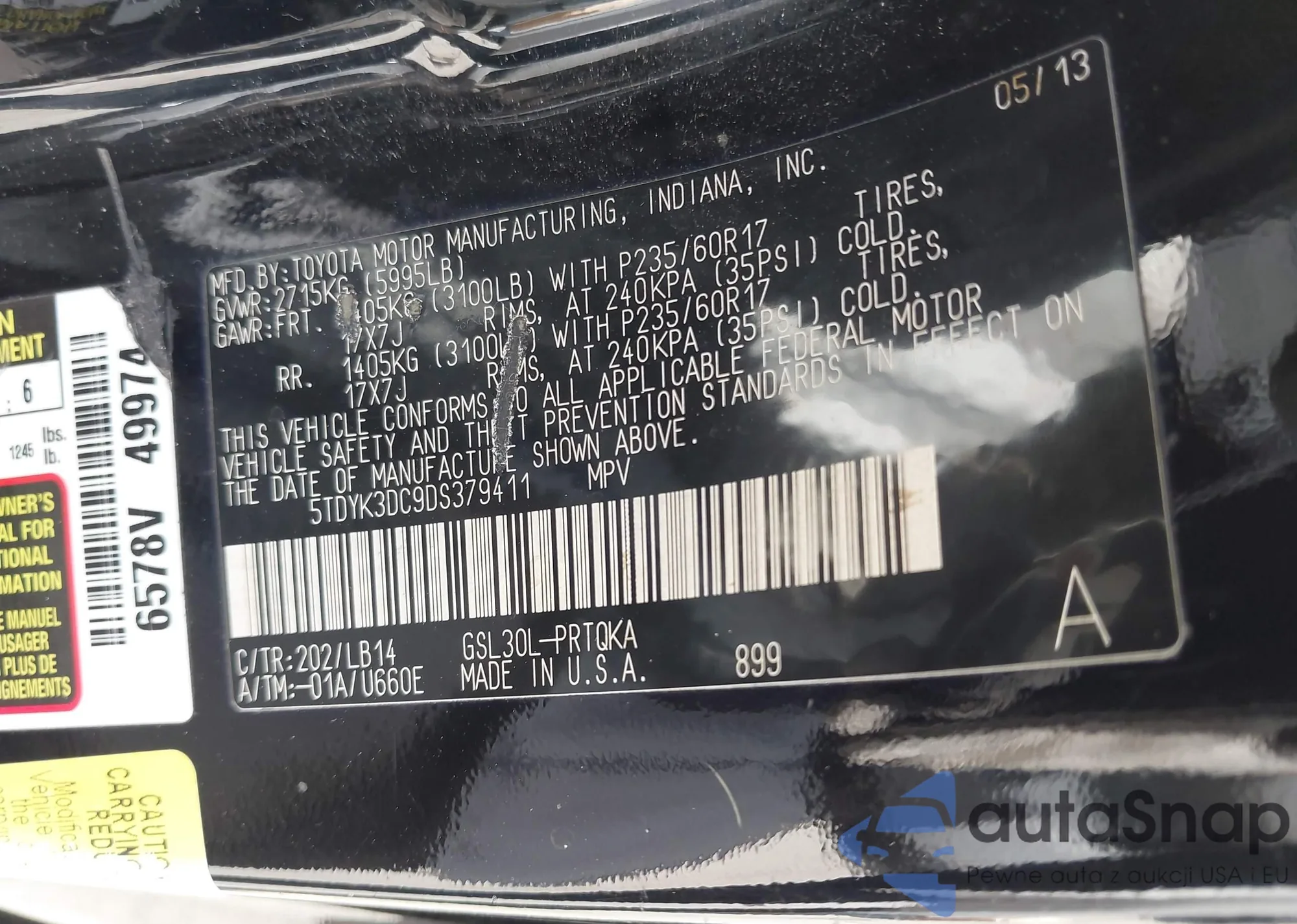 • VIN 5TDYK3DC9DS379411