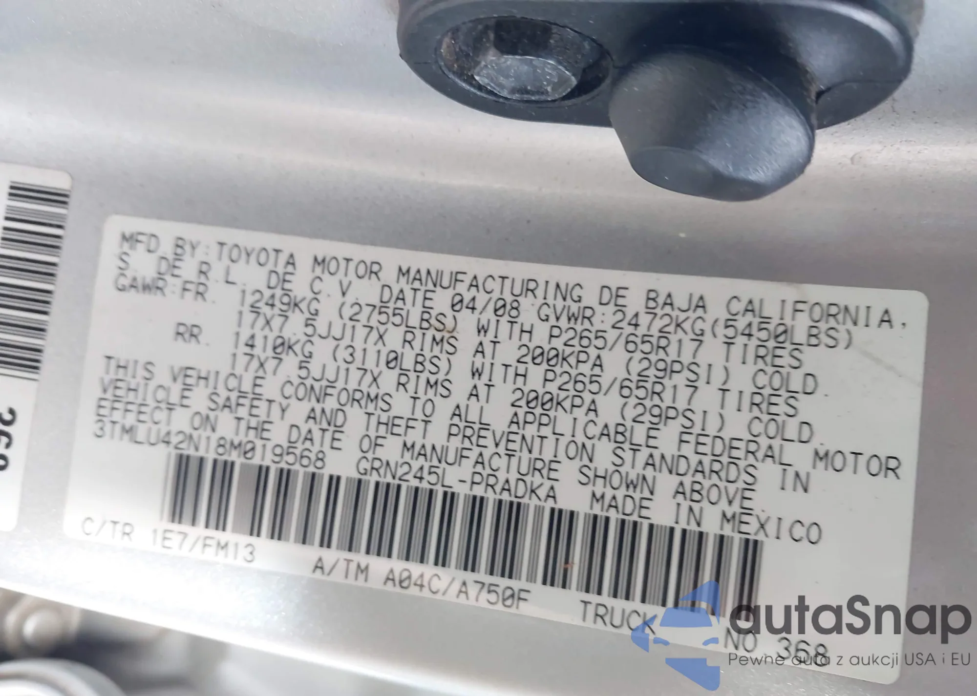 LOT: 44209527 VIN: 3TMLU42N18M019568