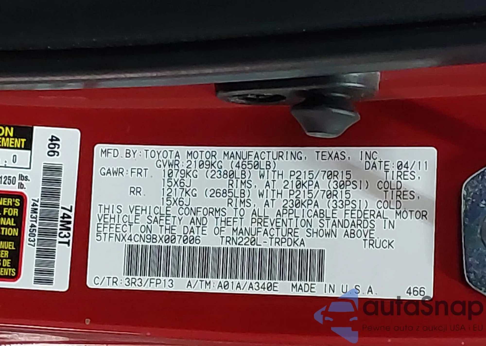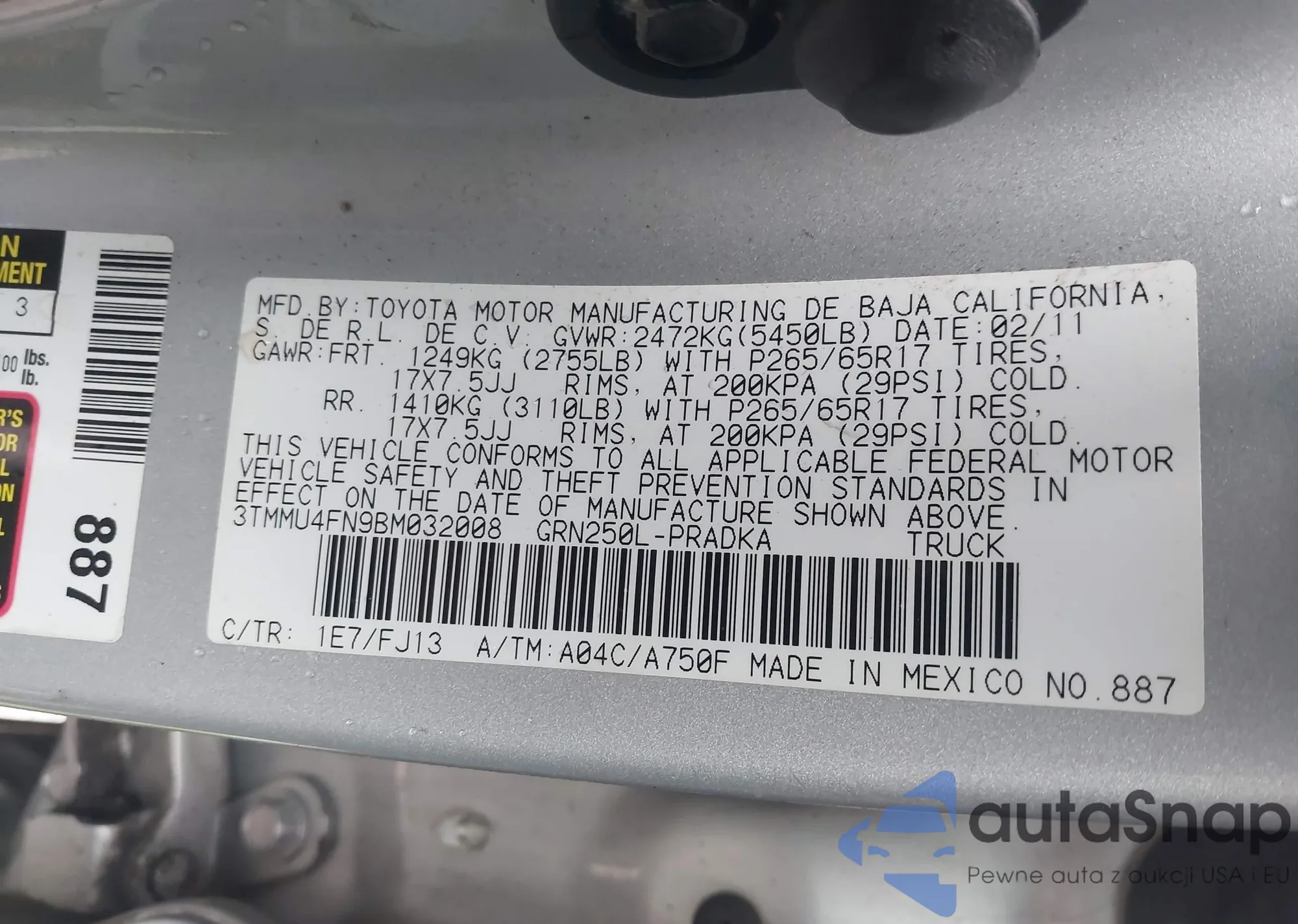 • VIN 3TMMU4FN9BM032008