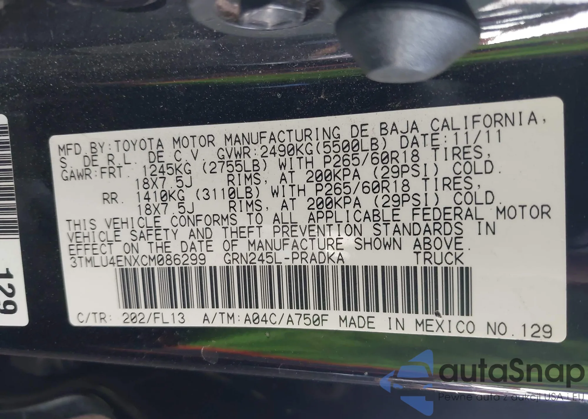 • VIN 3TMLU4ENXCM086299
