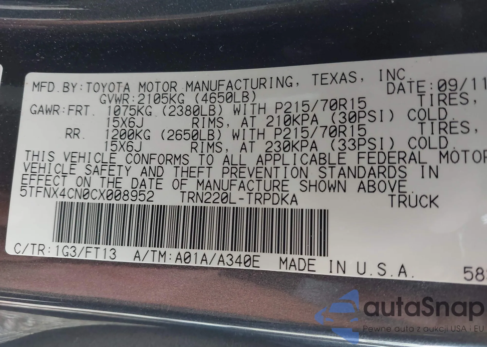 • VIN 5TFNX4CN0CX008952