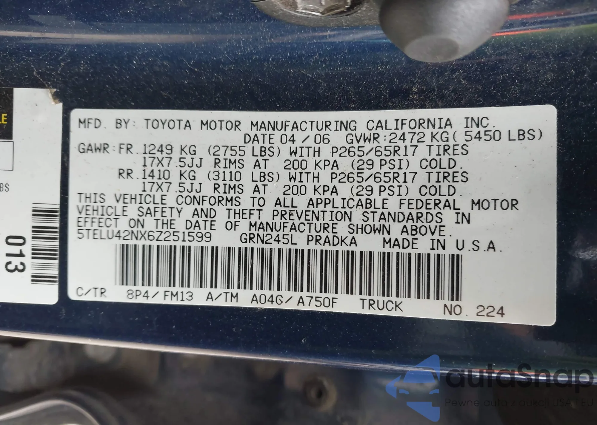 LOT: 44131883 VIN: 5TFTX4CN0DX025680