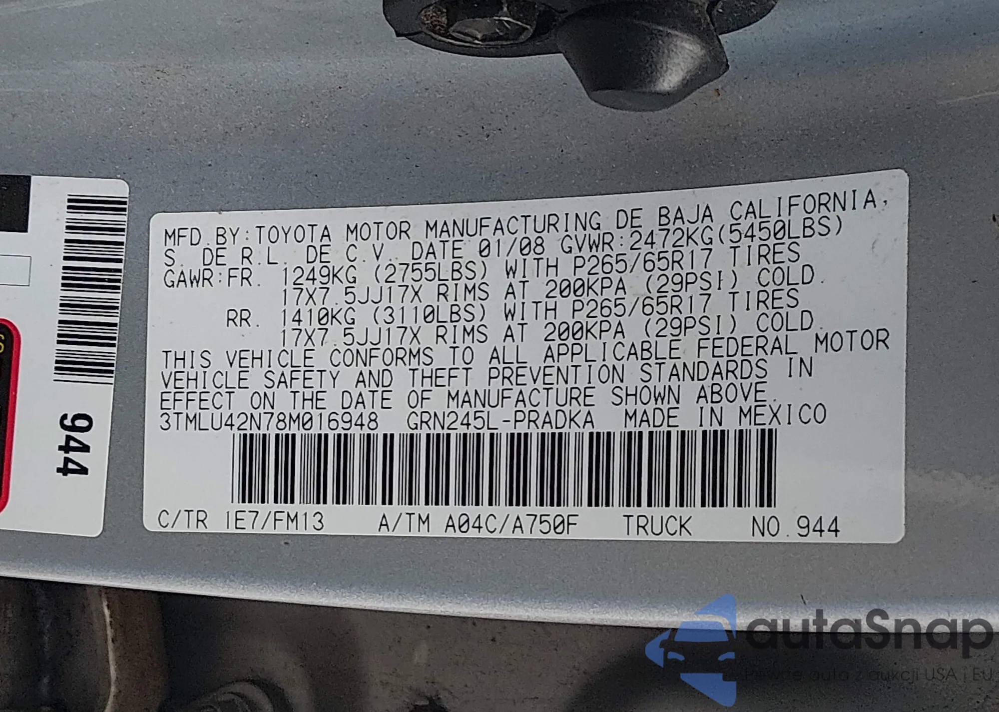 • VIN 3TMLU42N78M016948