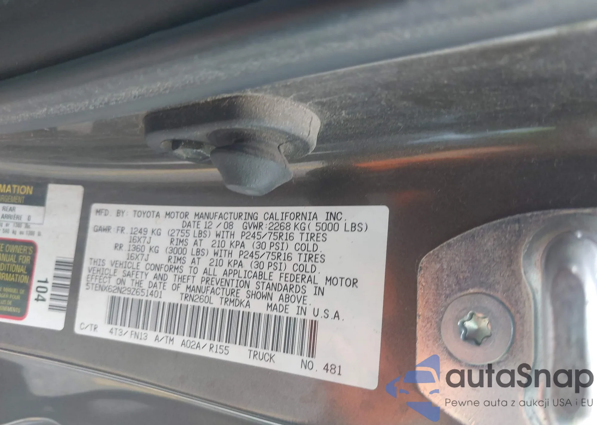 • VIN 5TFLU4EN2DX061361