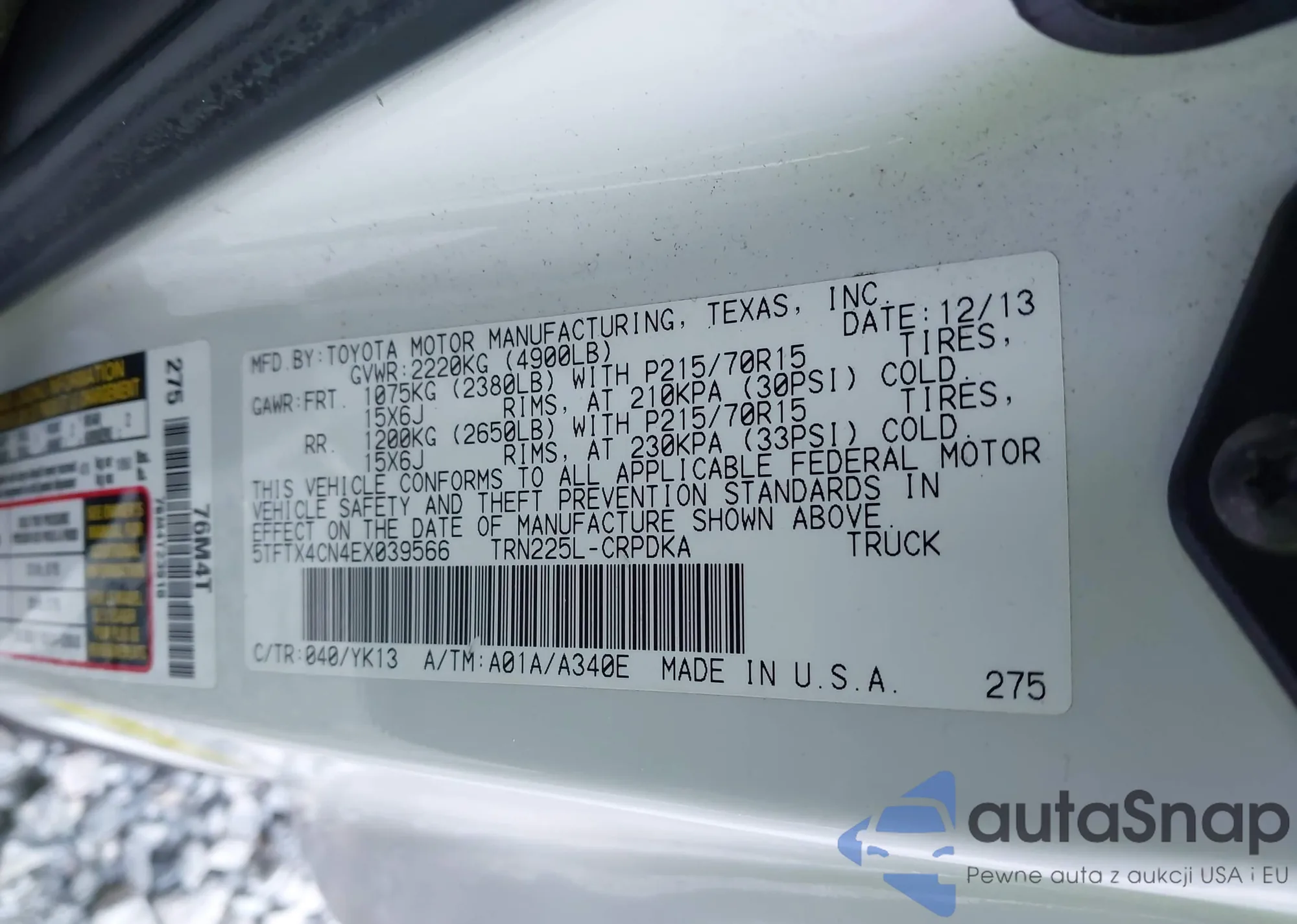 • VIN 5TFTX4CN4EX039566