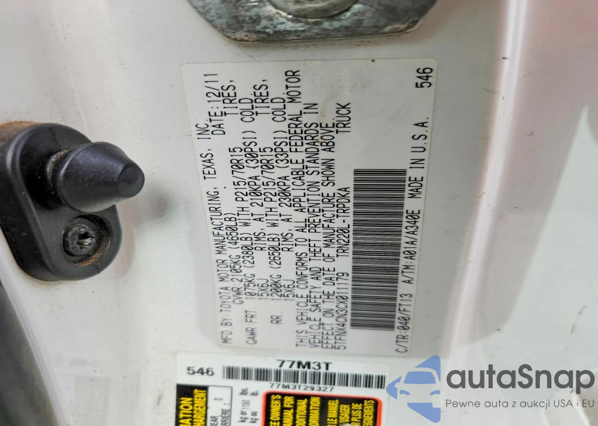 • VIN 5TFNX4CN3CX011179