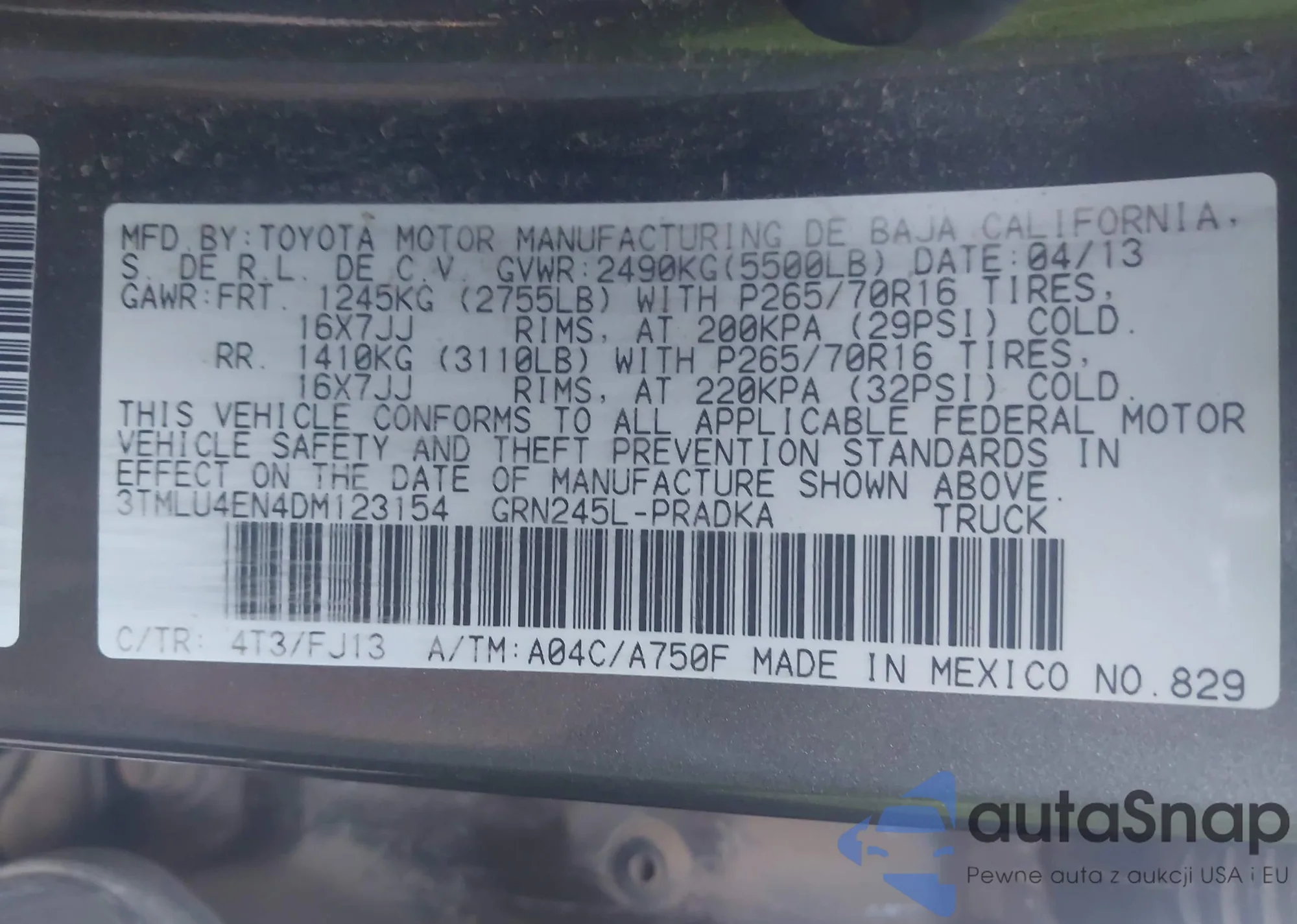 • VIN 3TMLU4EN4DM123154