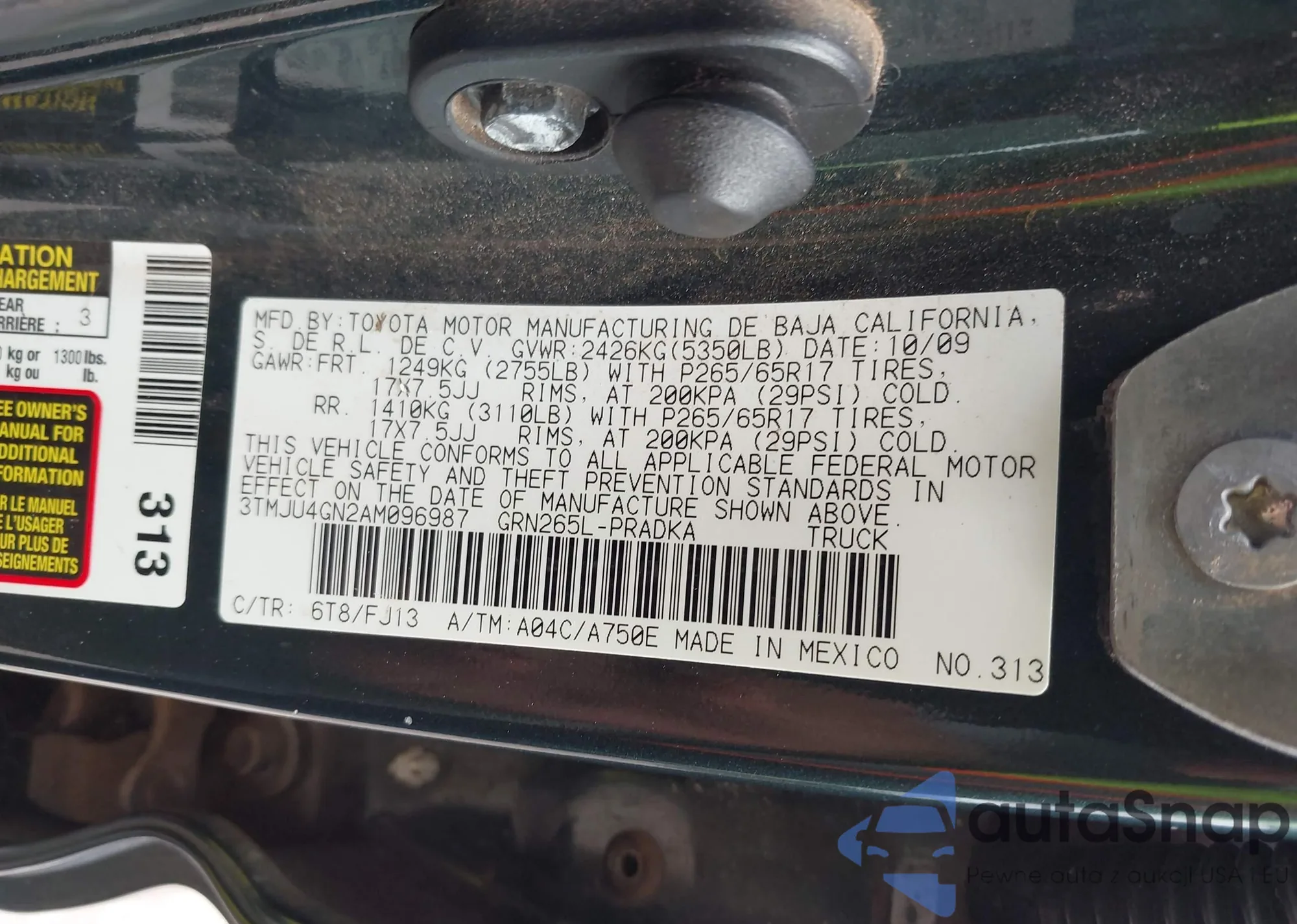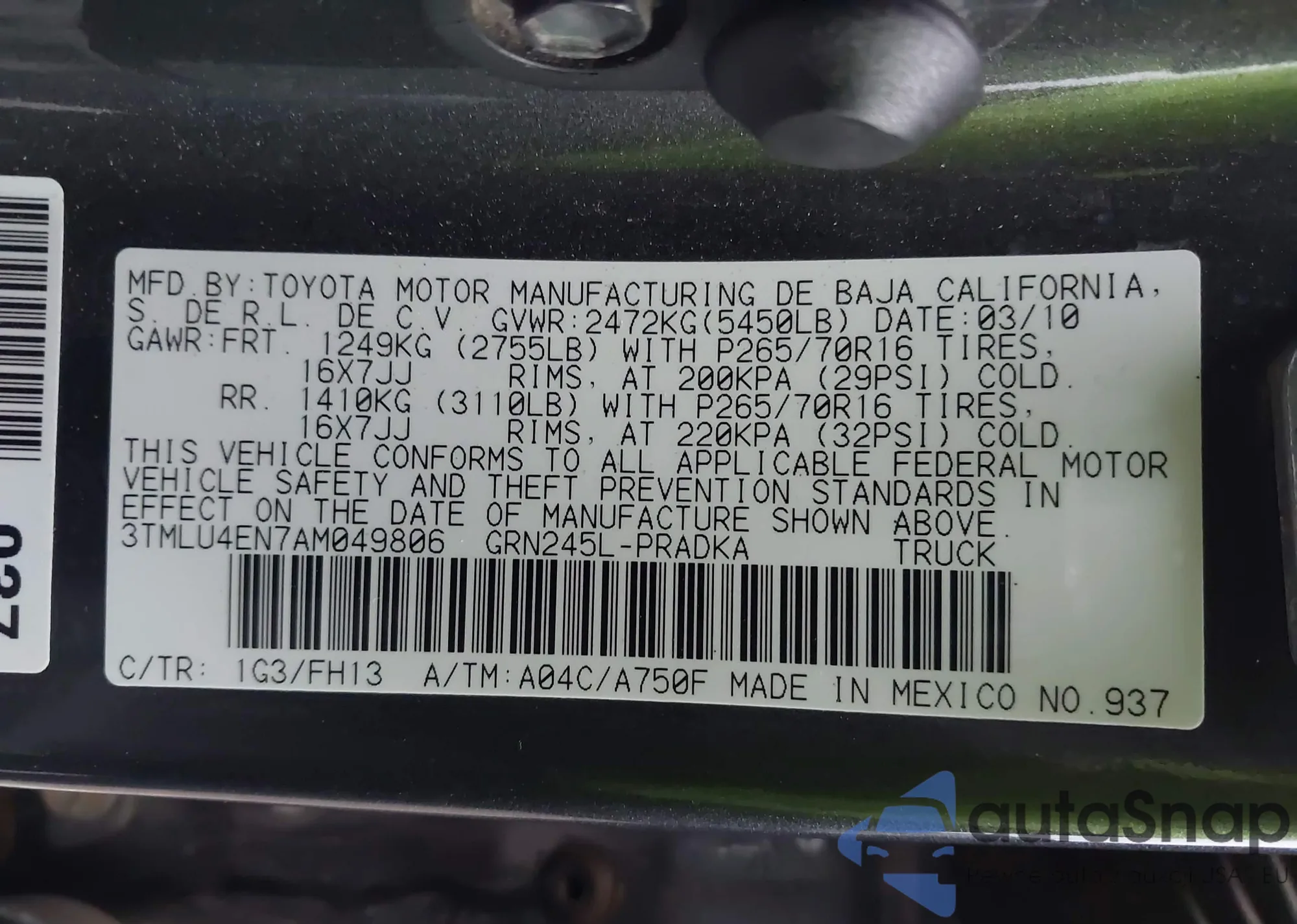 • VIN 3TMLU4EN7AM049806
