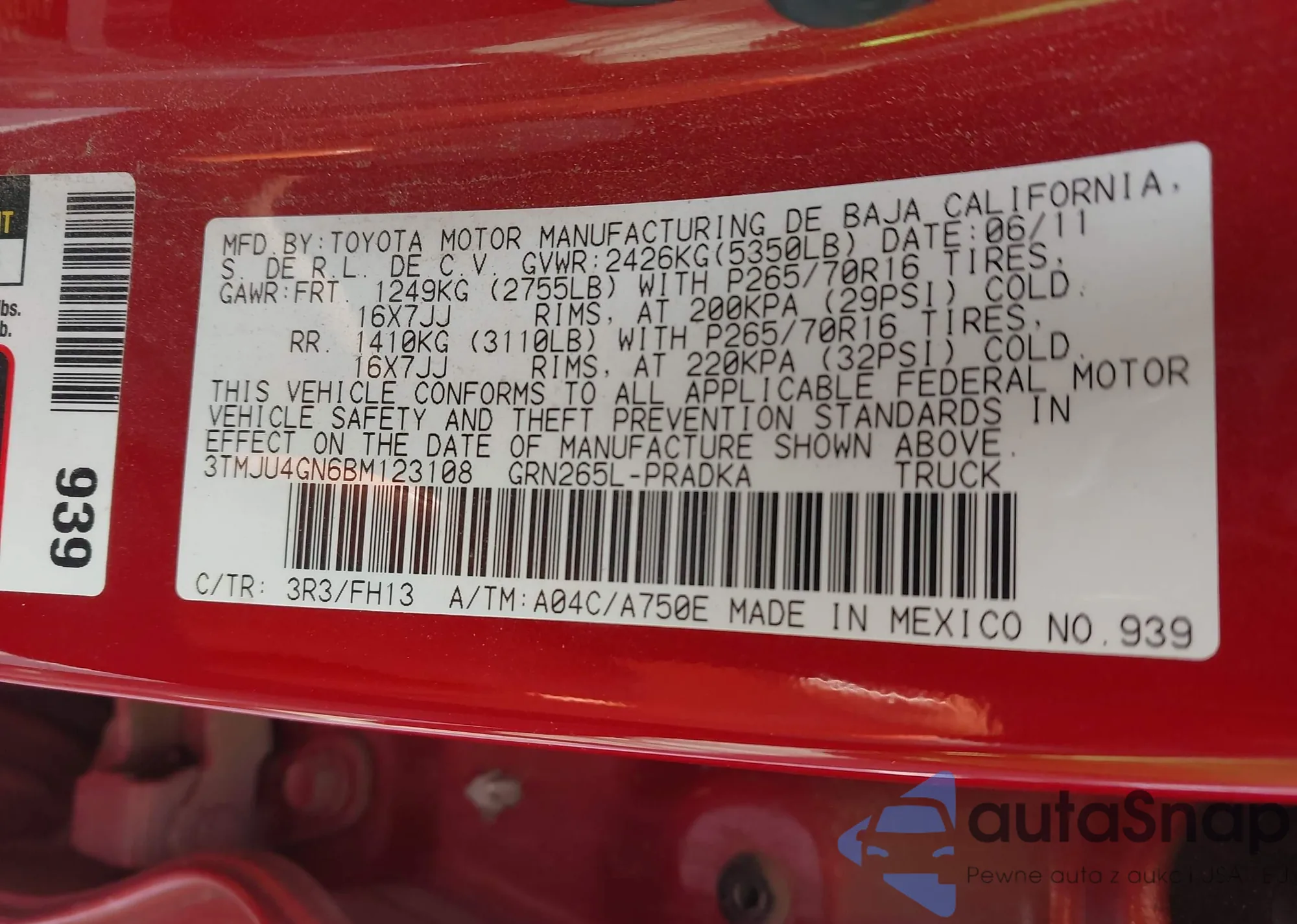 • VIN 3TMJU4GN6BM123108