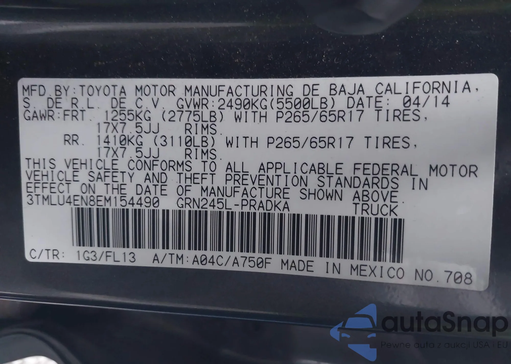 • VIN 3TMLU4EN8EM154490