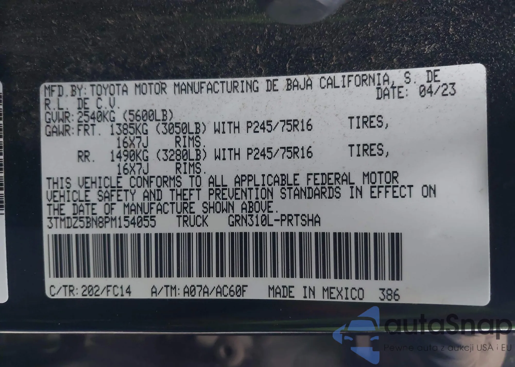 • VIN 3TMDZ5BN8PM154055