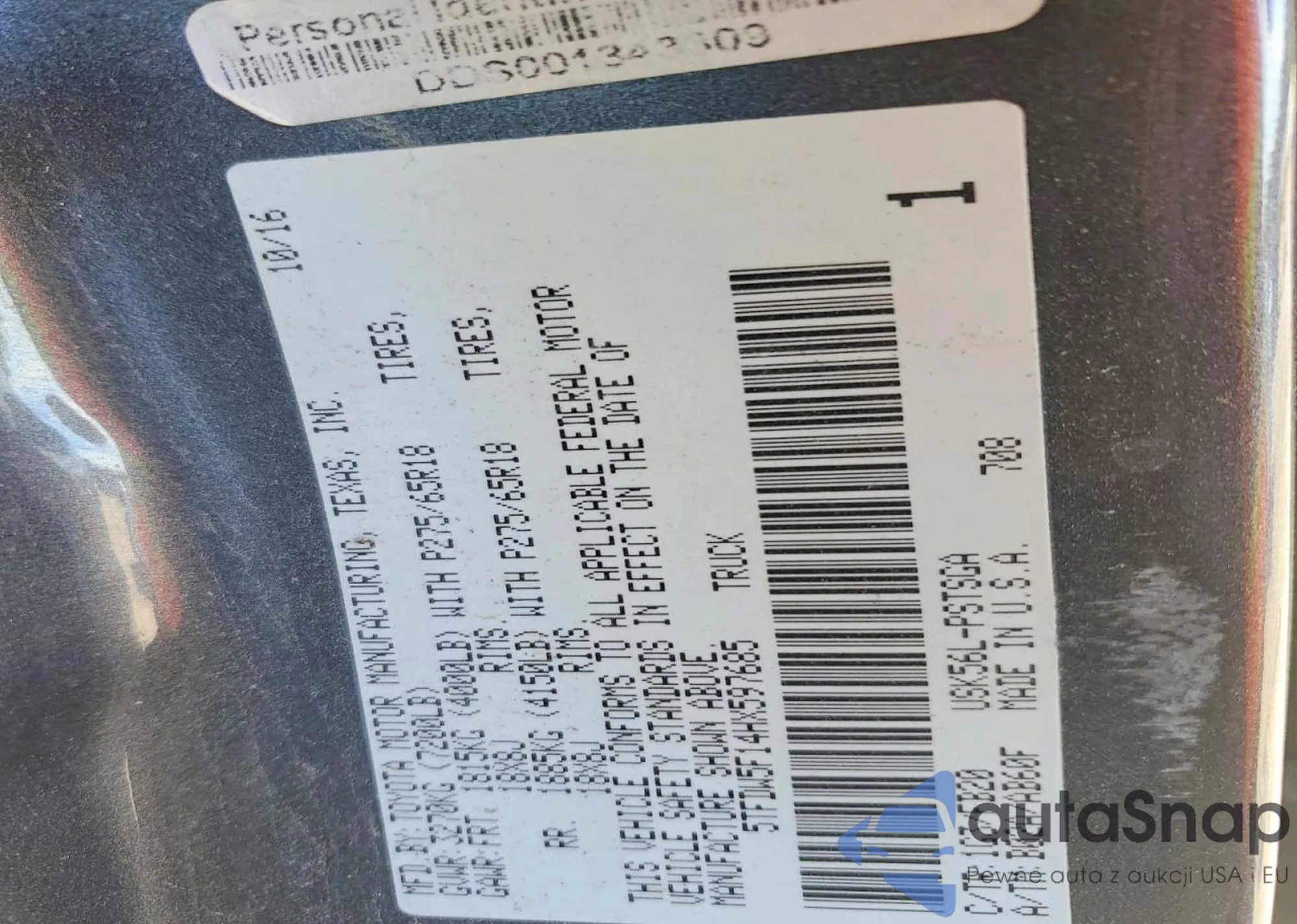 LOT: 75648055 VIN: 5TFUW5F14AX150733