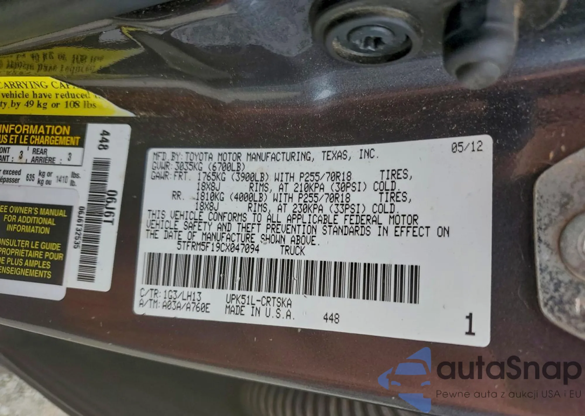 • VIN 5TFRM5F19CX047094