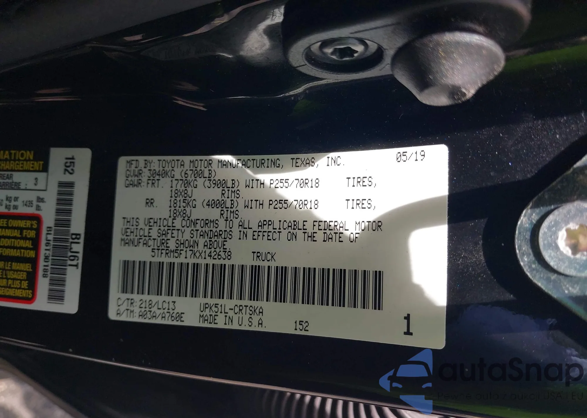 • VIN 5TFRM5F17KX142638