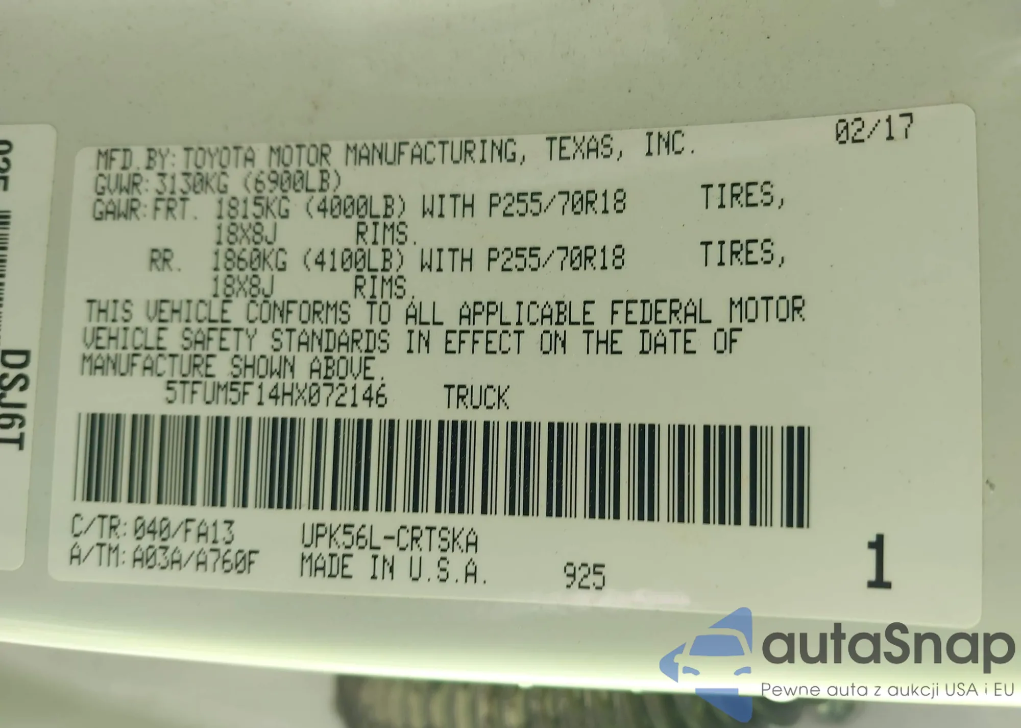• VIN 5TFUM5F14HX072146