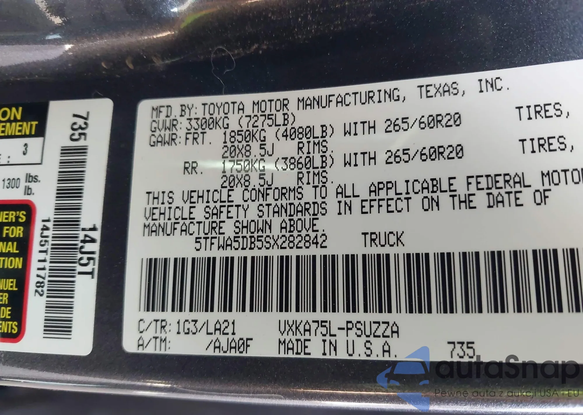 • VIN 5TFWA5DB5SX282842