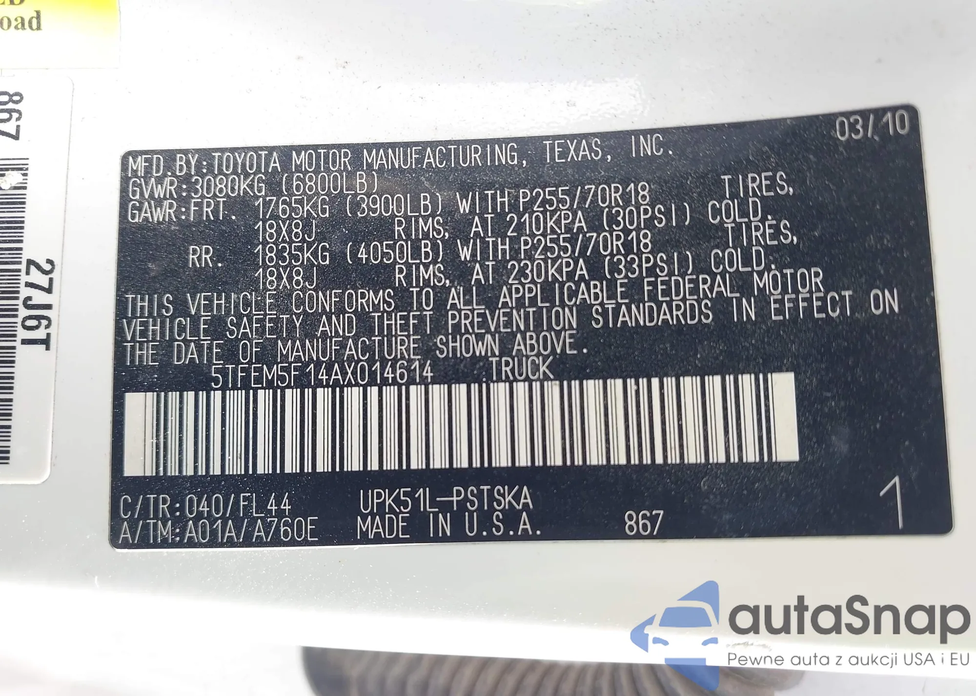 LOT: 44288854 VIN: 5TFEM5F14AX014614