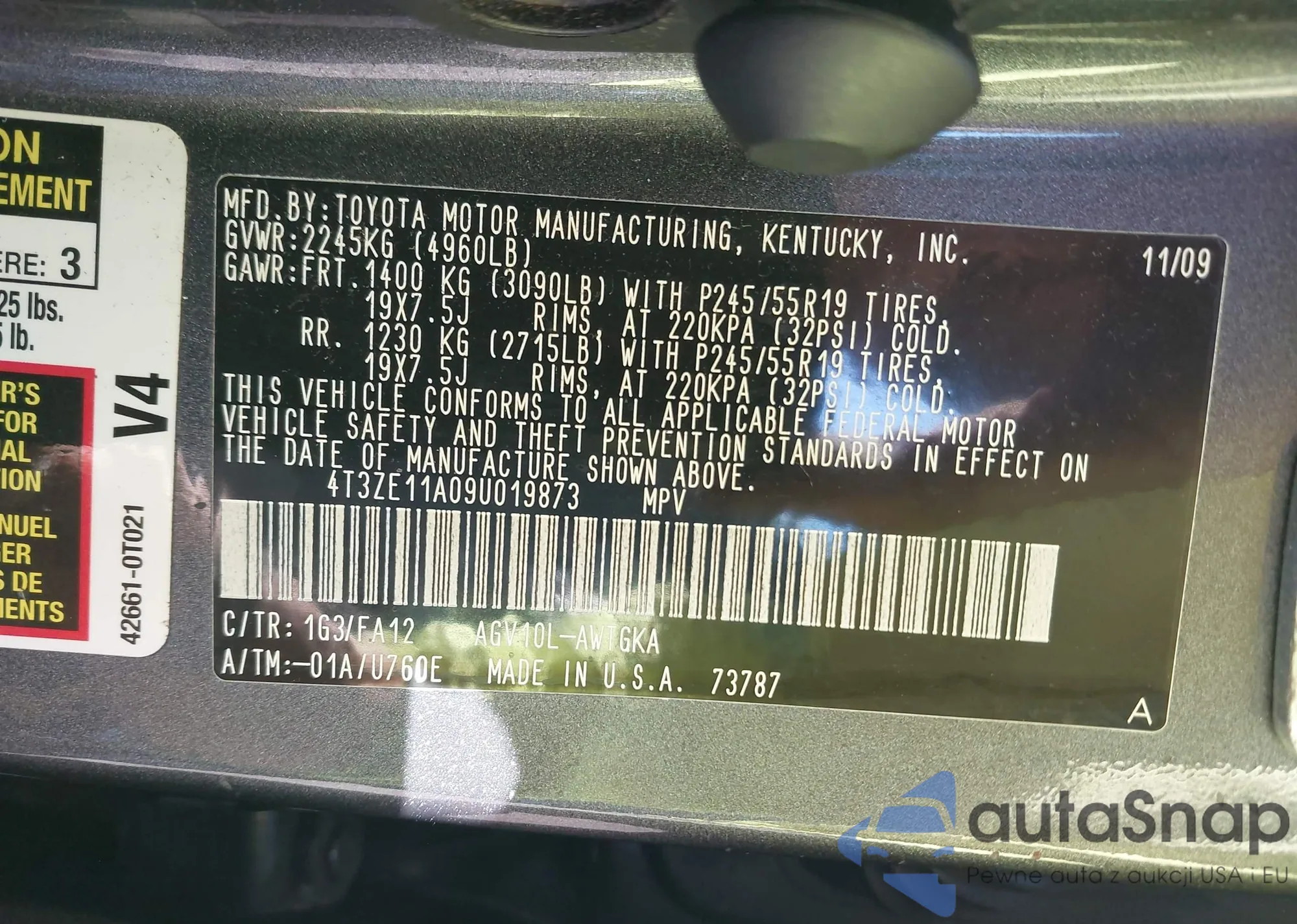 • VIN 4T3ZK3BB5AU033218