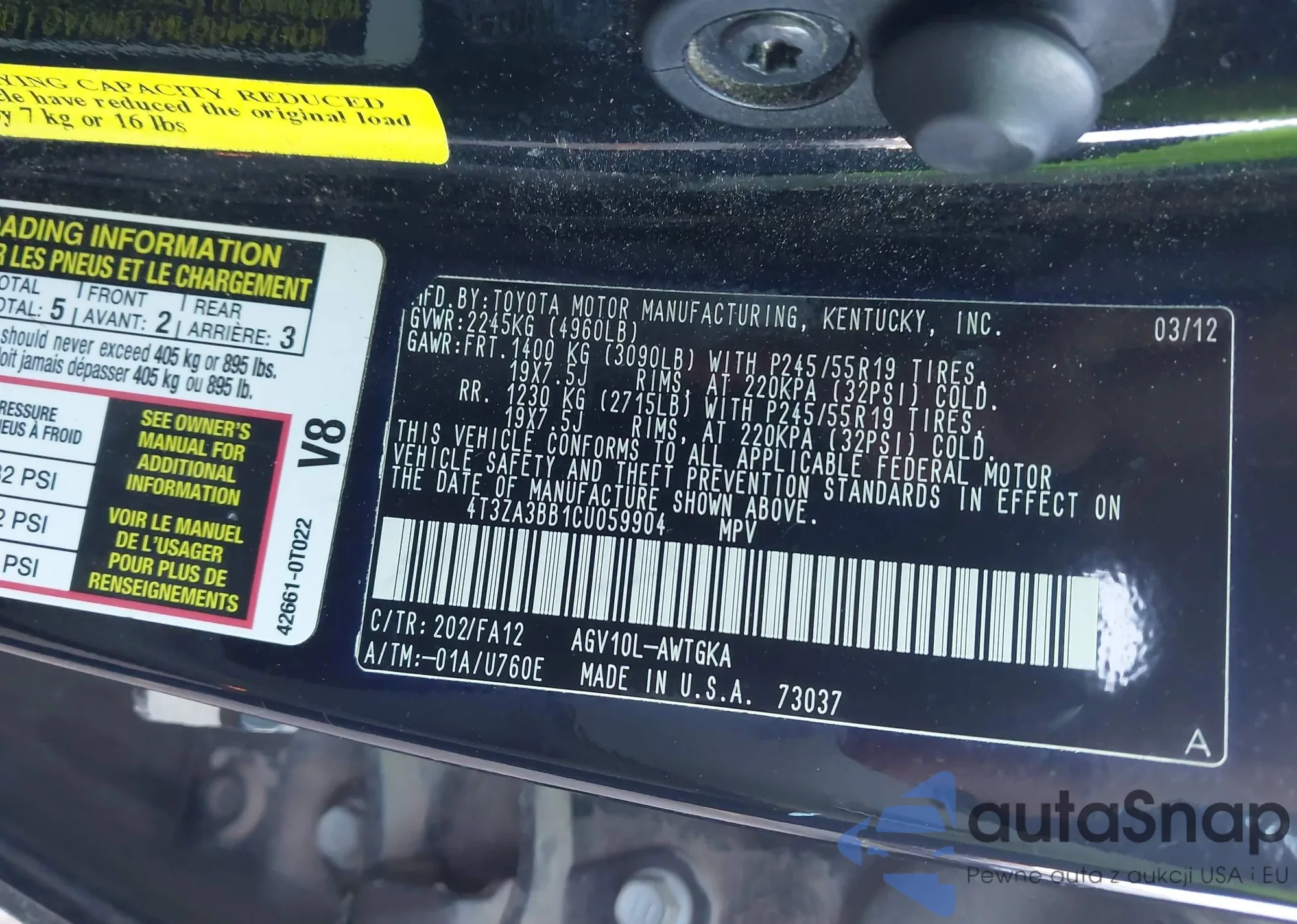 • VIN 4T3ZA3BB1CU059904