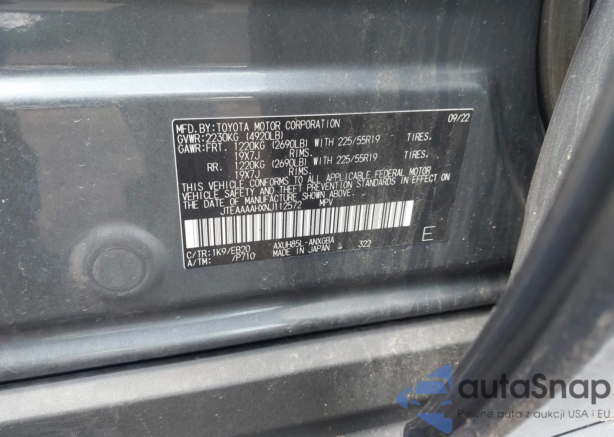 • VIN JTEAAAAHXNJ112572