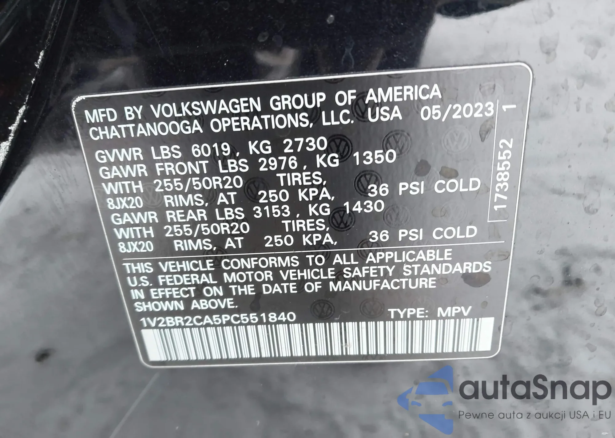 • VIN 1V2LE2CA2RC220619