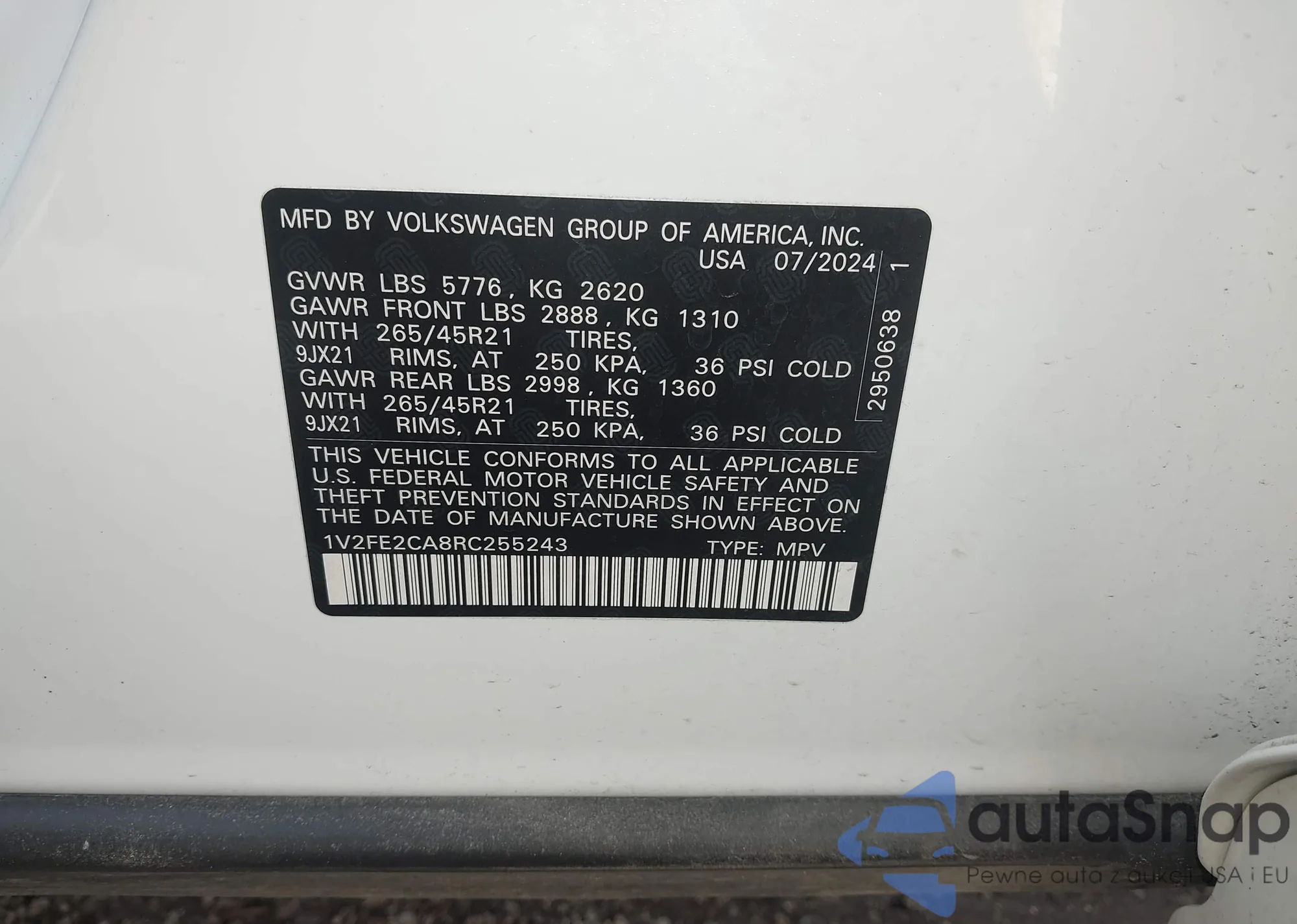 • VIN 1V2FE2CA8RC255243