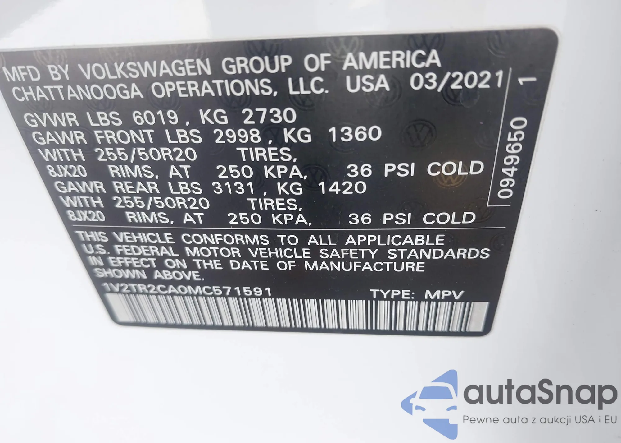 LOT: 44452681 VIN: 1V2TR2CA0MC571591