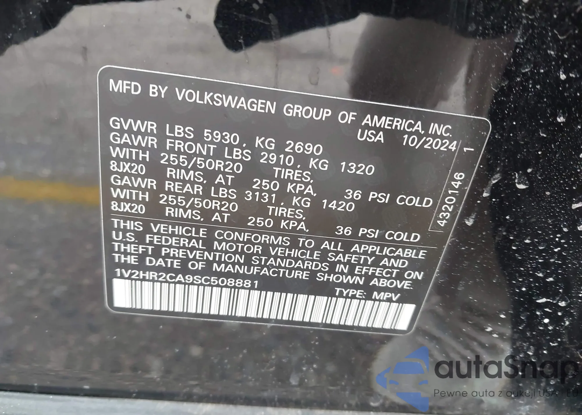 • VIN 1V2HR2CA9SC508881