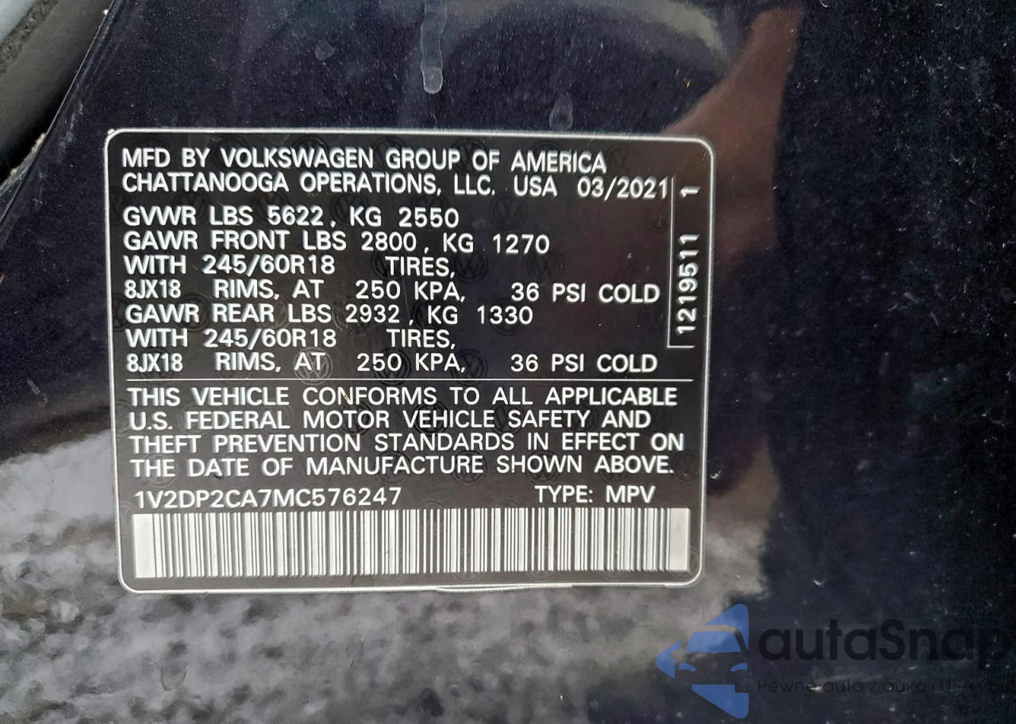 LOT: 96492755 VIN: 1V2DP2CA7MC576247