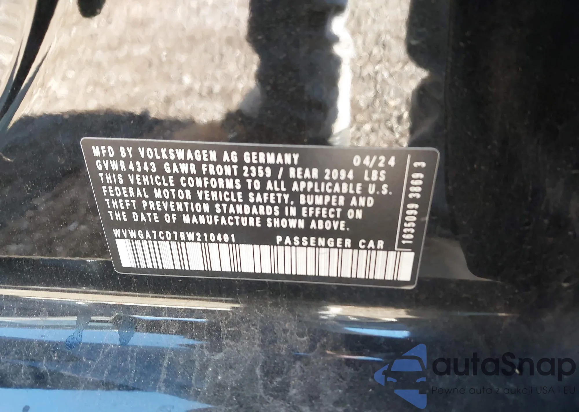 • VIN WVWGA7CD7RW210401