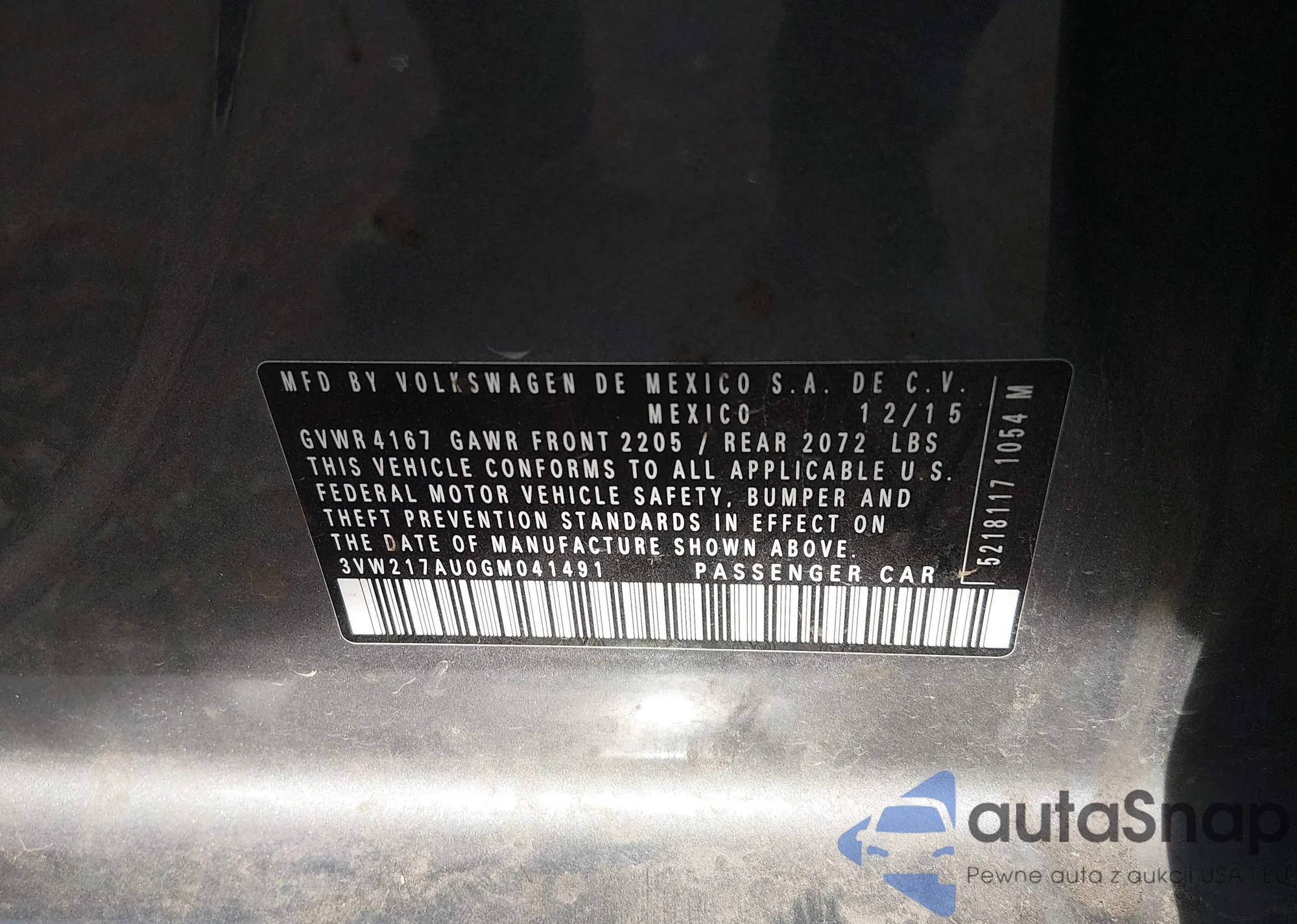 • VIN 3VW217AU0GM041491