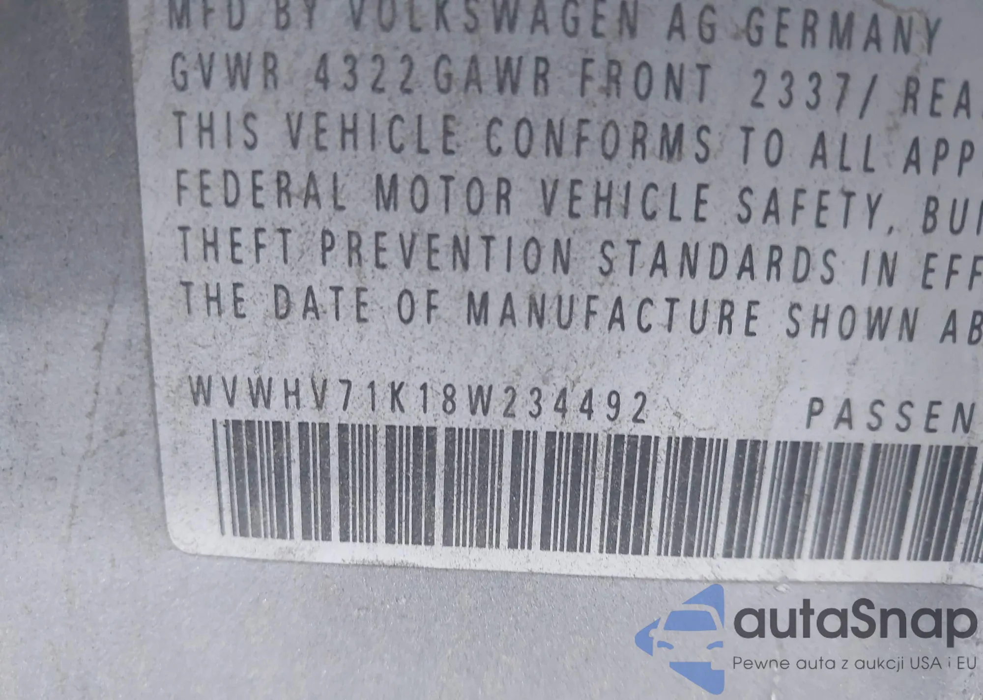 • VIN WVWHV71K18W234492