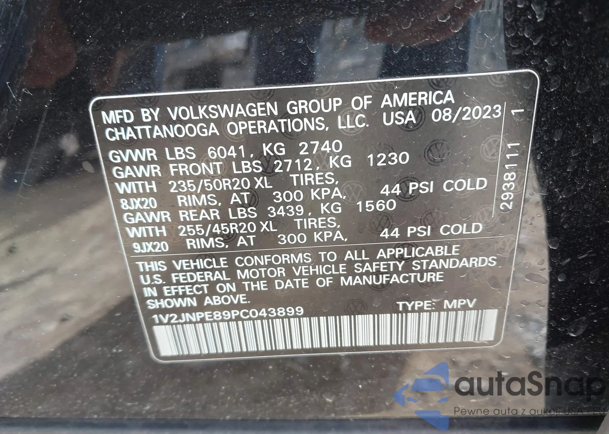 LOT: 44620549 VIN: WVGTMPE25MP032469