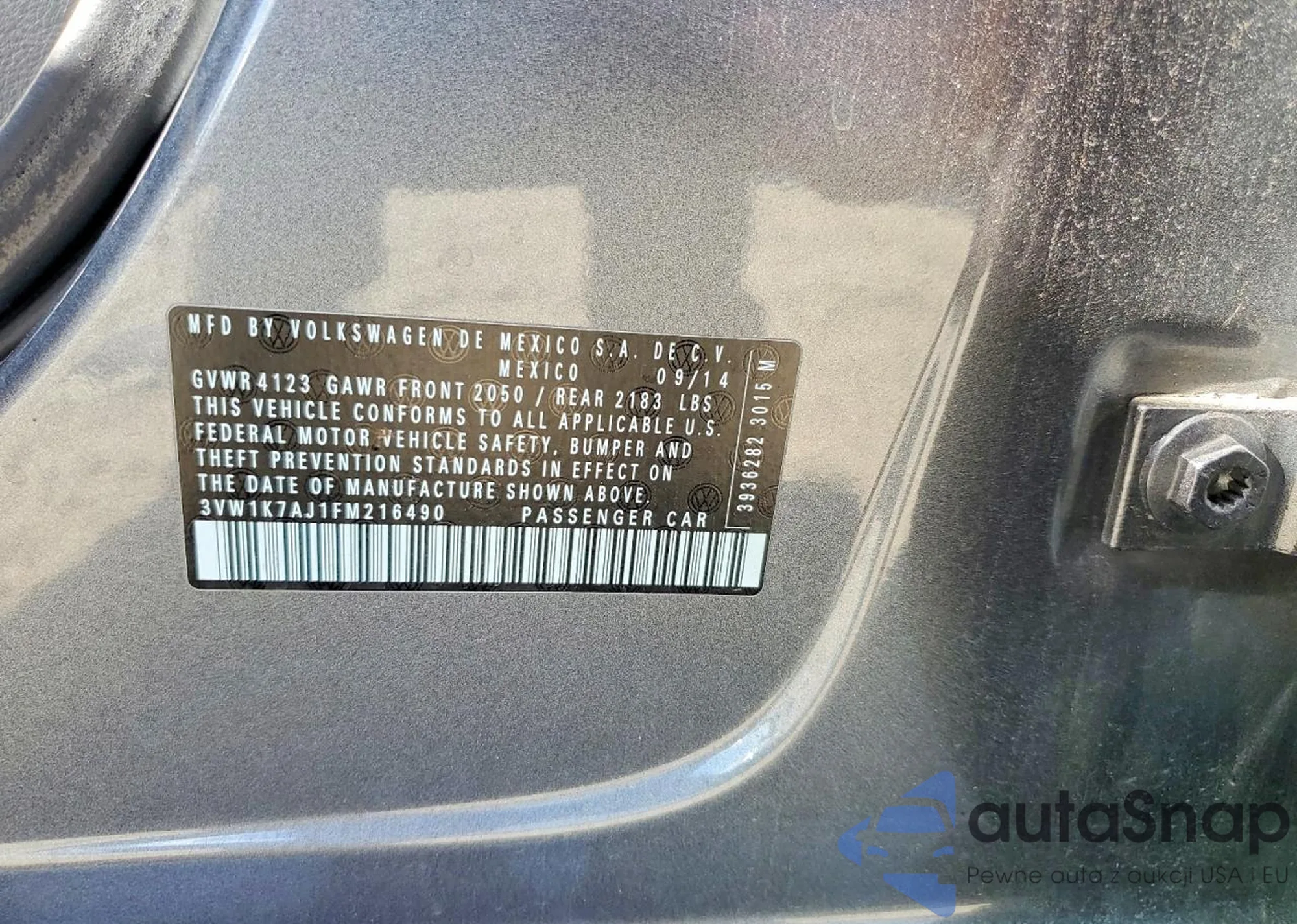 • VIN 3VW1K7AJ1FM216490