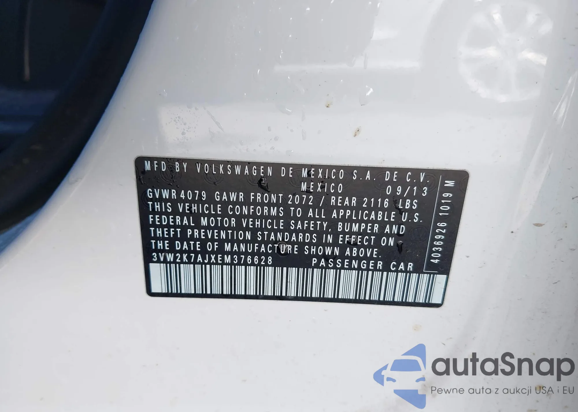 • VIN 3VW2K7AJXEM376628
