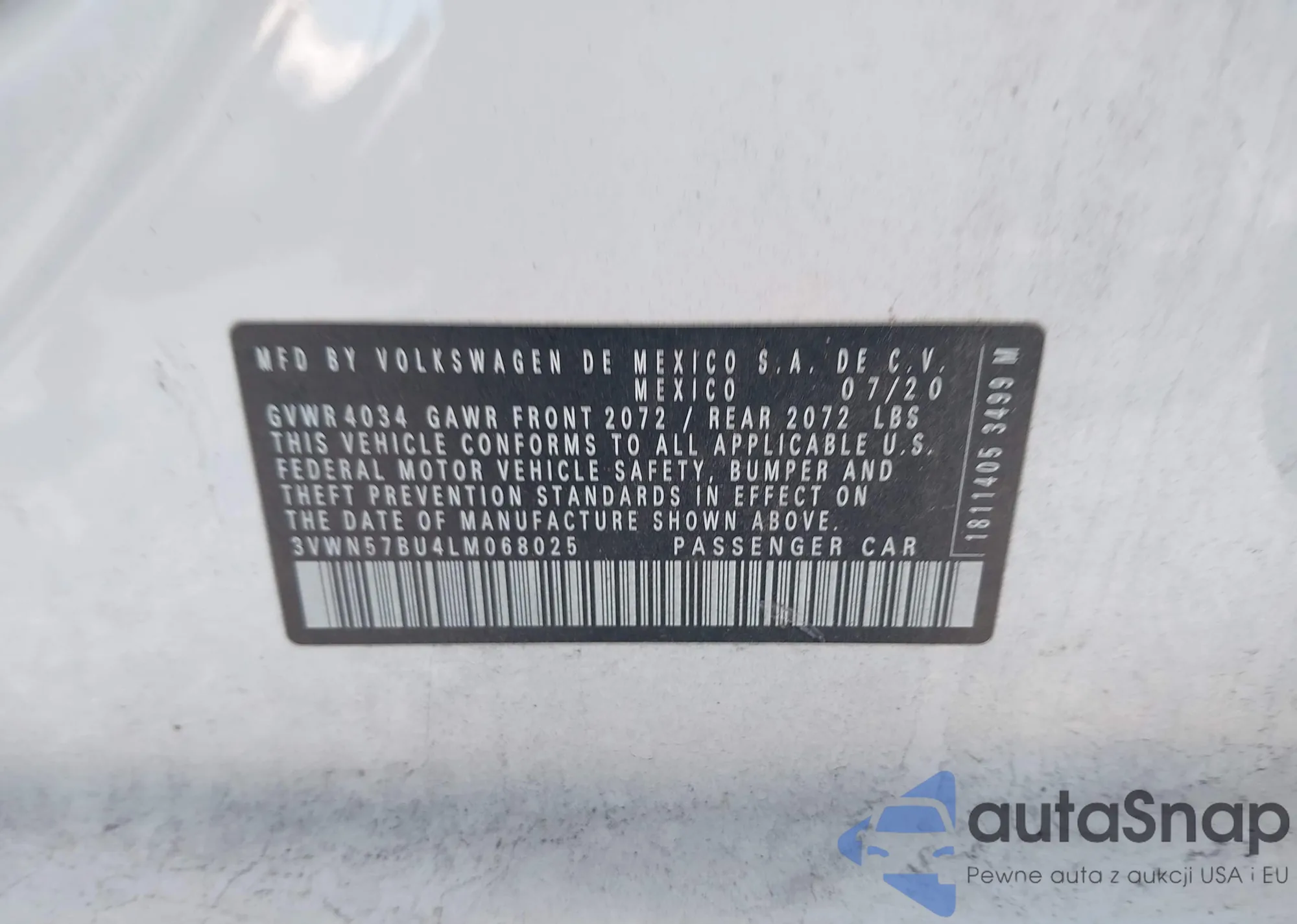 LOT: 43587478 VIN: 3VWN57BU4LM068025