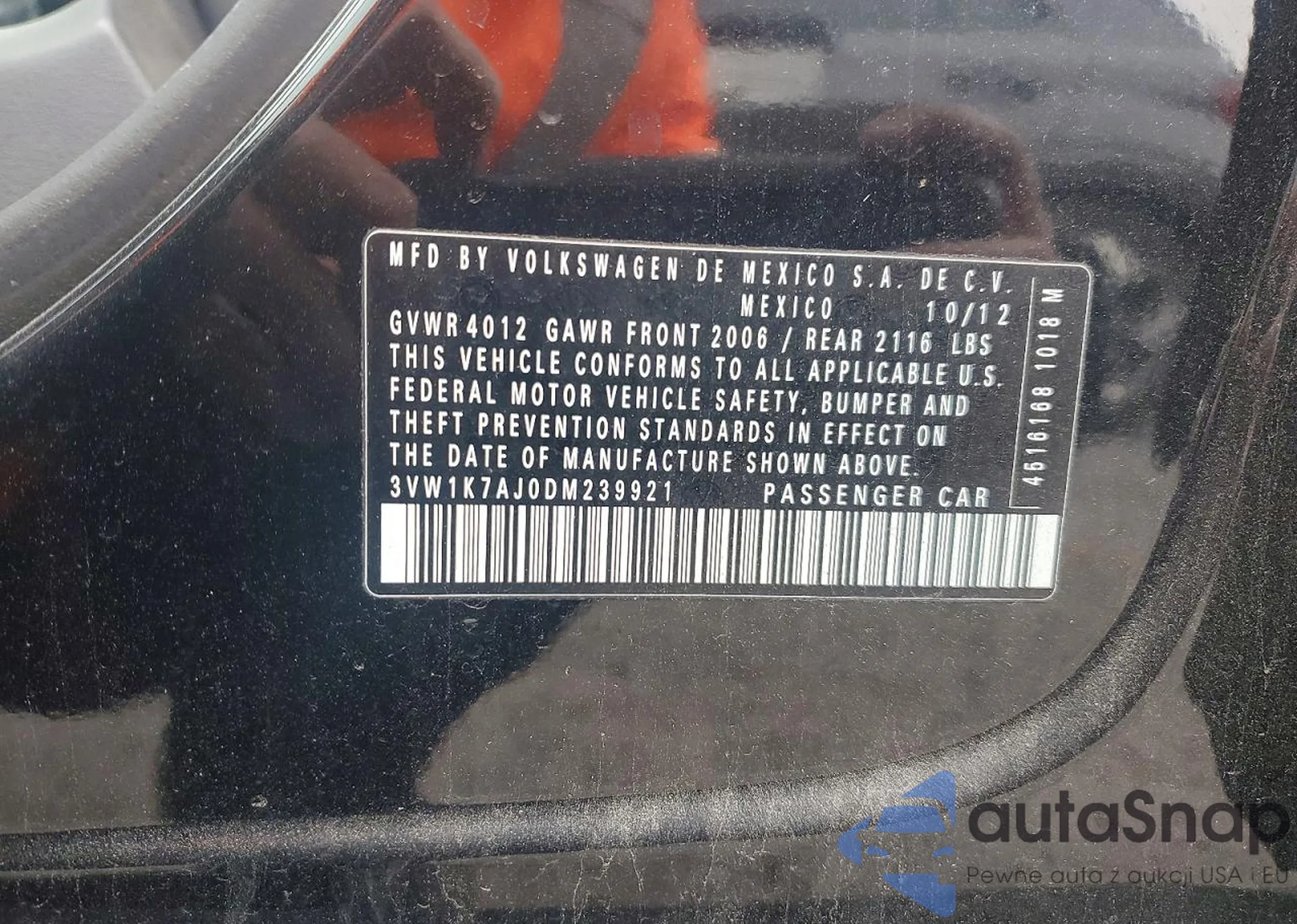 • VIN 3VW1K7AJ0DM239921
