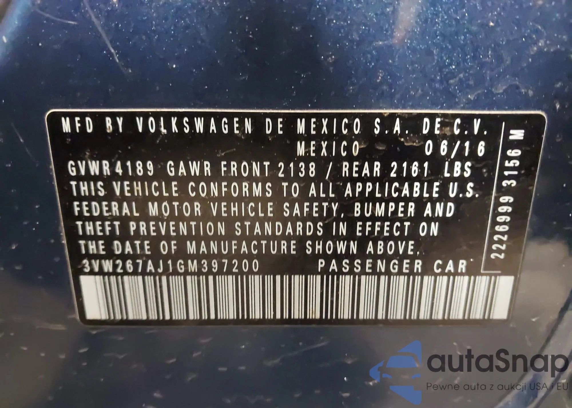• VIN 3VW267AJ7GM403033