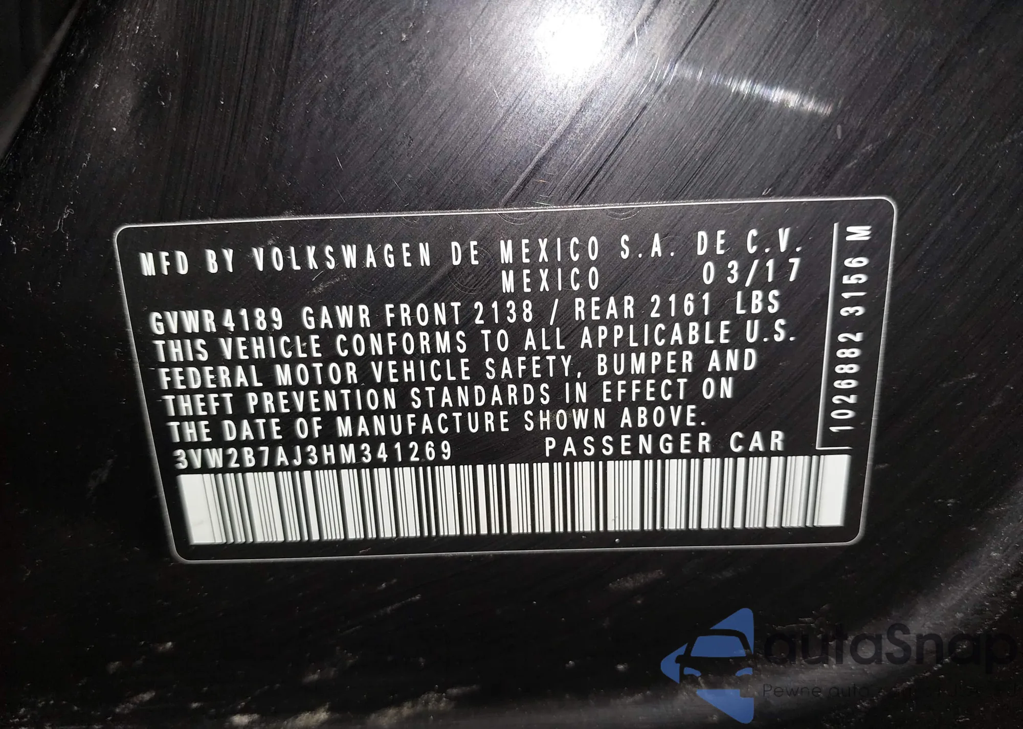 • VIN 3VW2B7AJ3HM341269