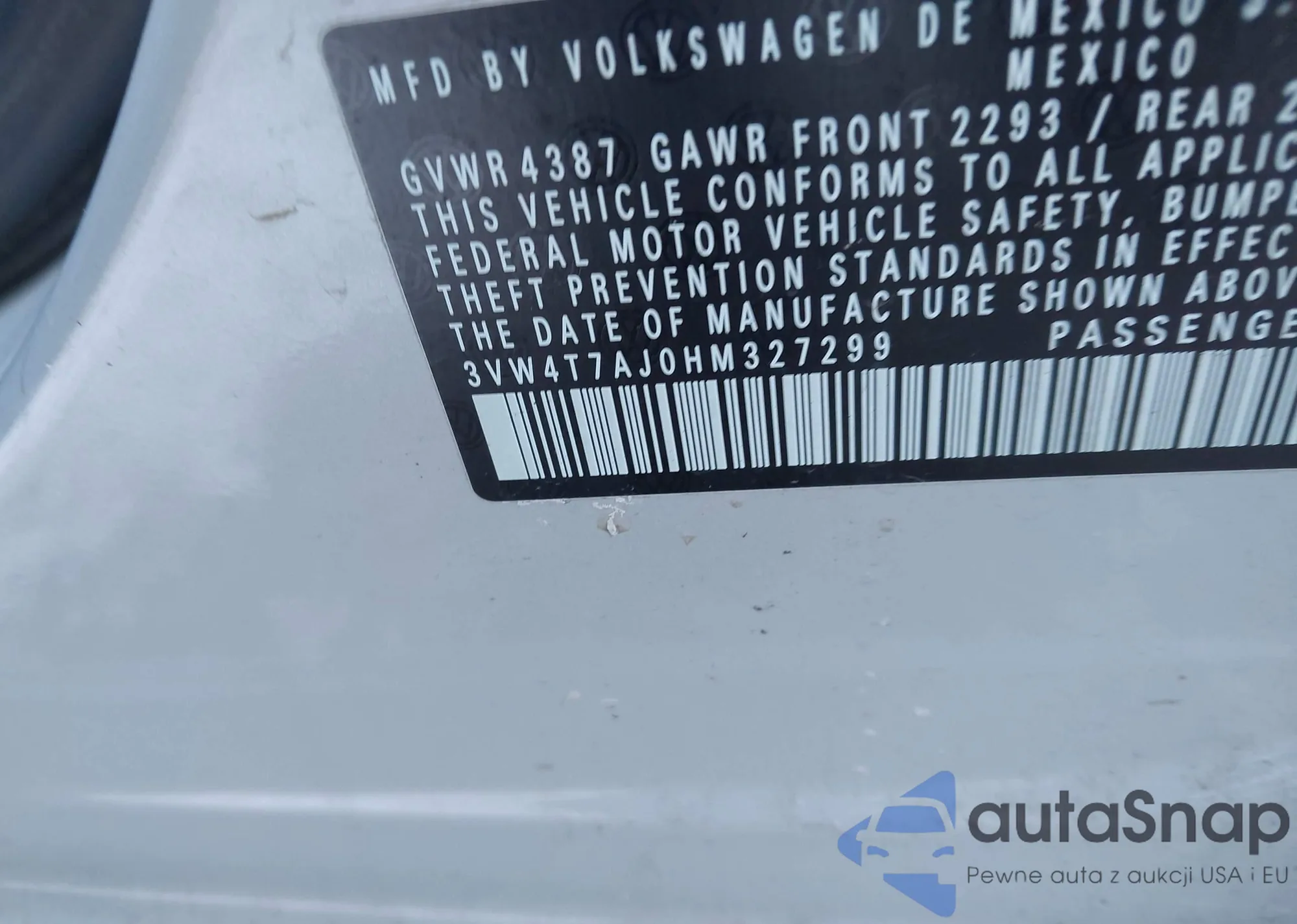 • VIN 3VW4T7AJ0HM327299