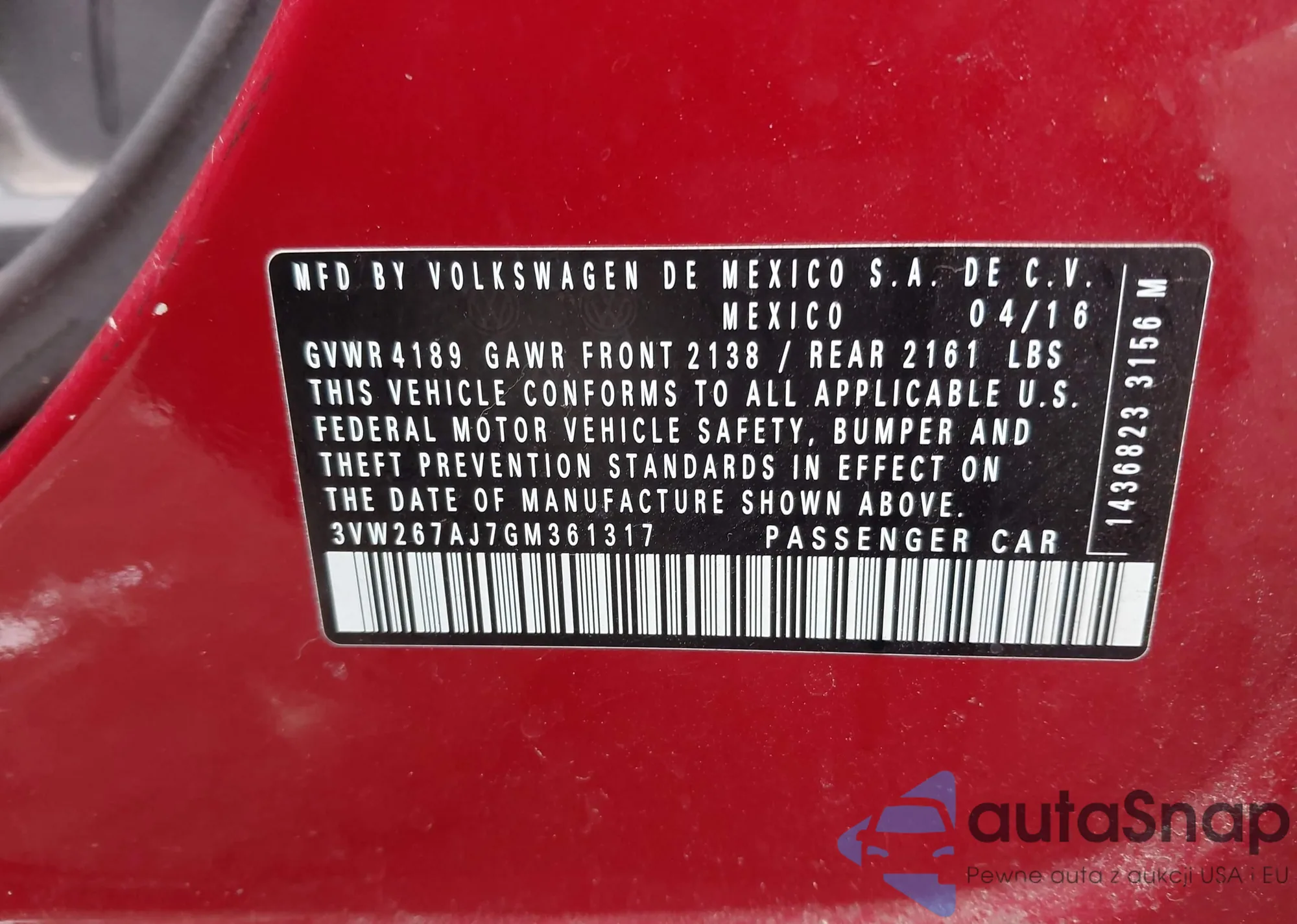 • VIN 3VW267AJ7GM361317