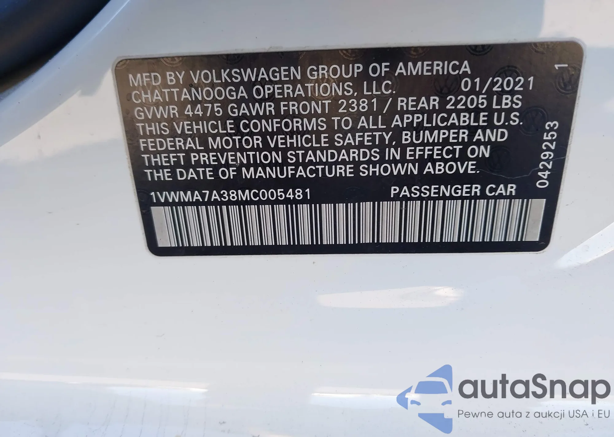 • VIN 1VWMA7A38MC005481