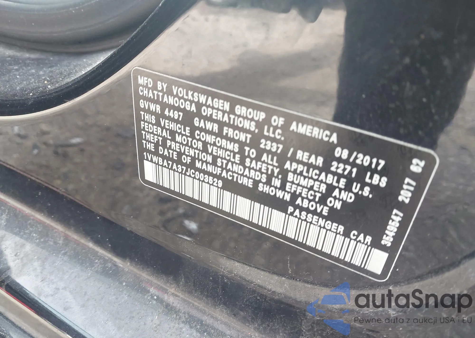 LOT: 44562363 VIN: 1VWBA7A37JC003529