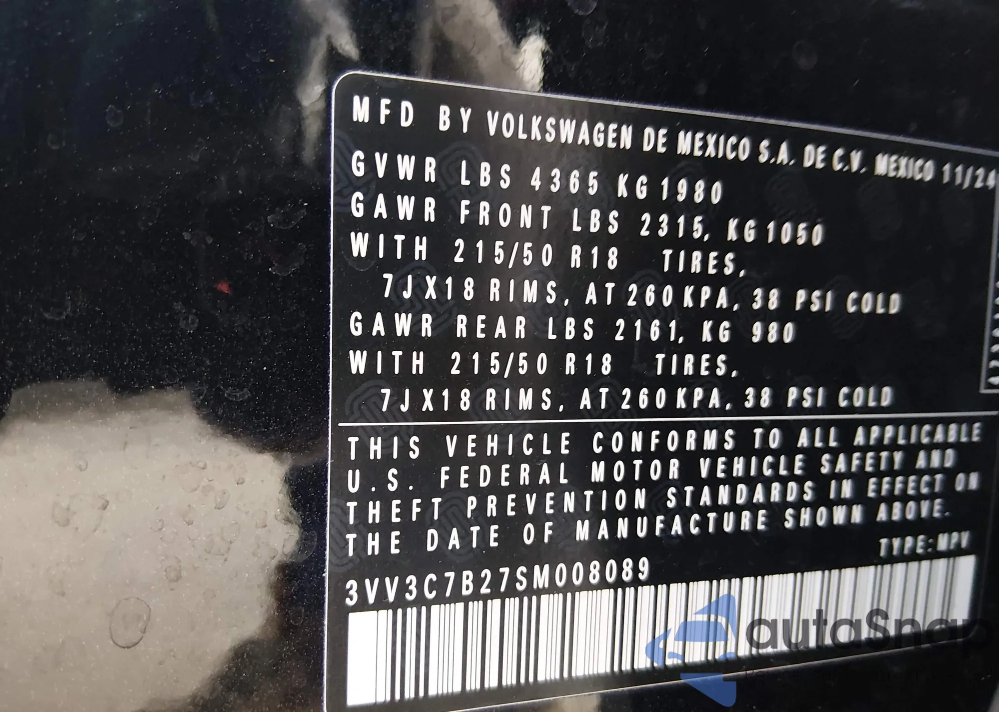 • VIN 3VV3C7B27SM008089