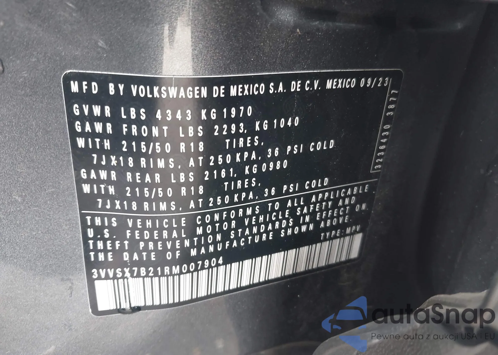 • VIN 3VV1X7B21NM009187