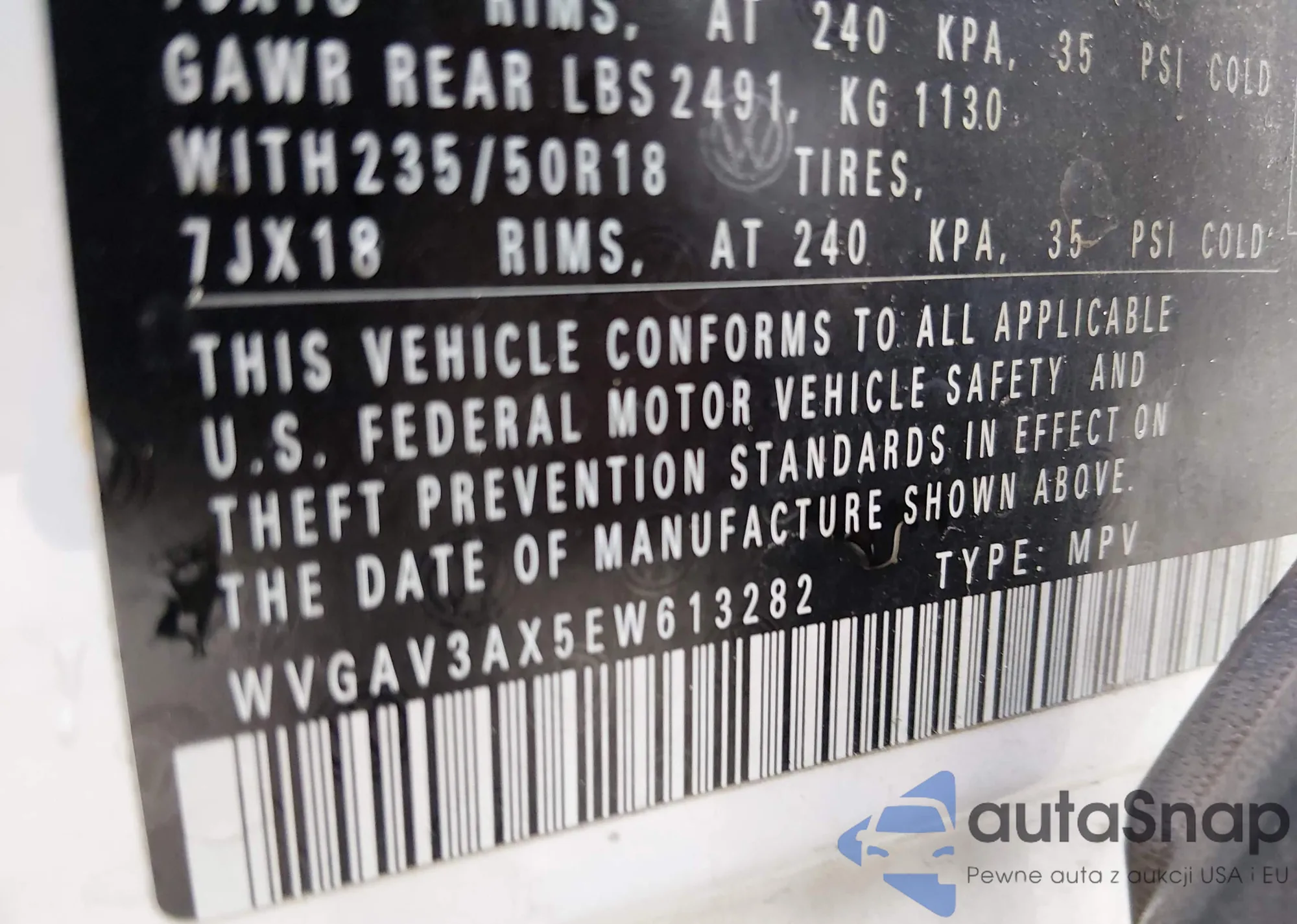 • VIN WVGAV3AX5EW613282
