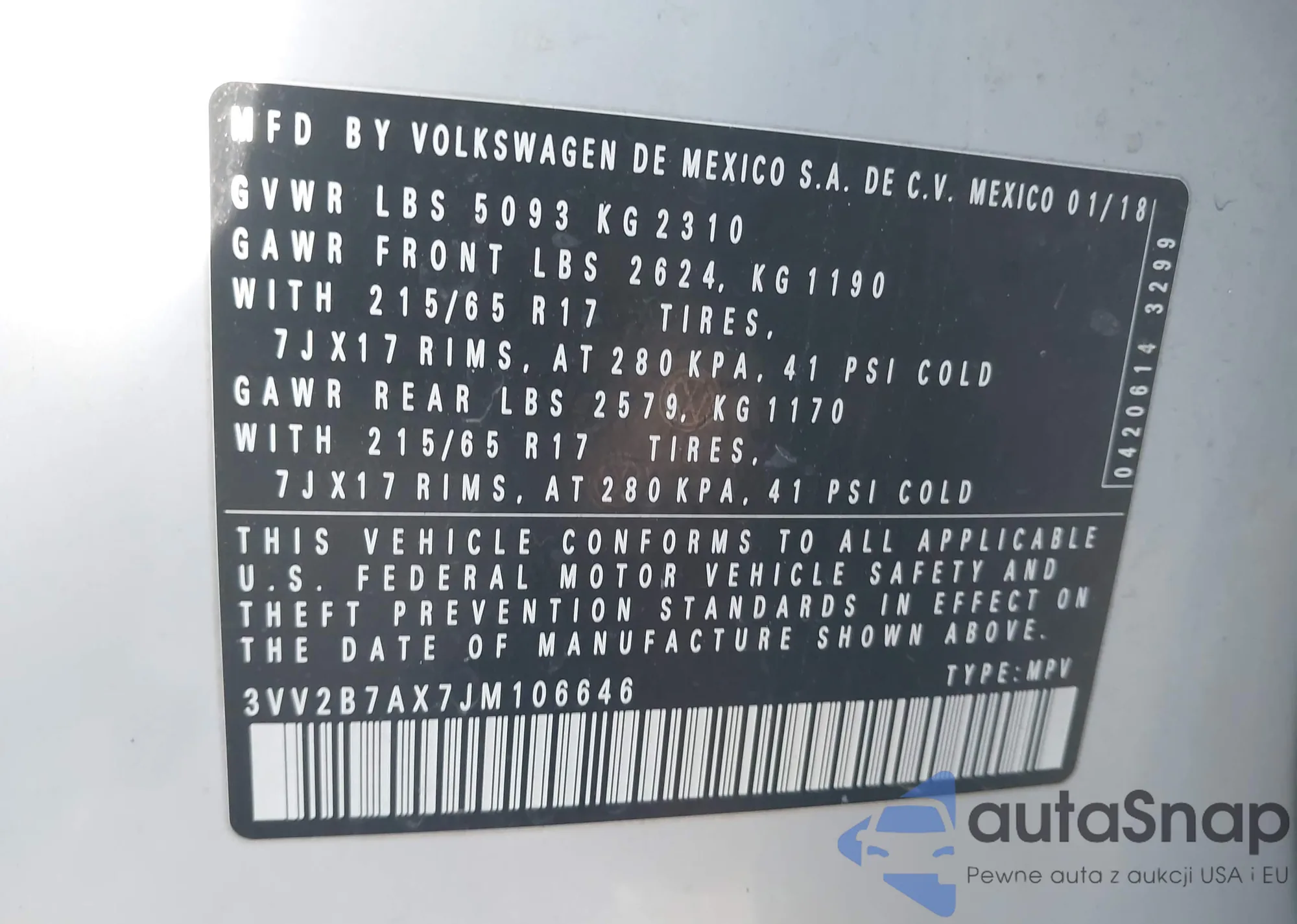 • VIN 3VV2B7AX7JM106646